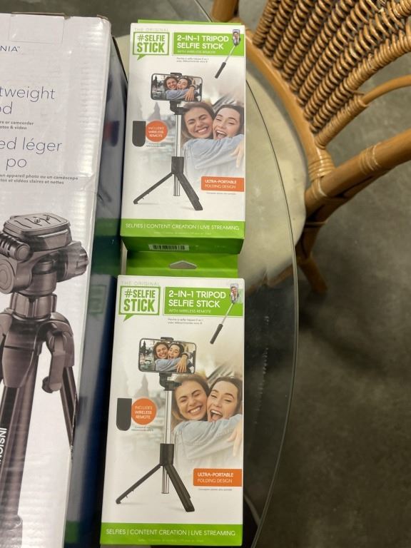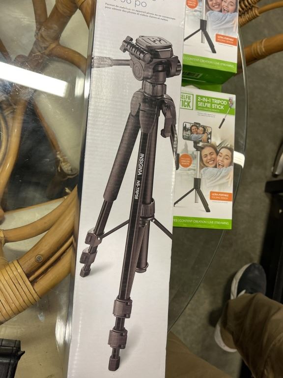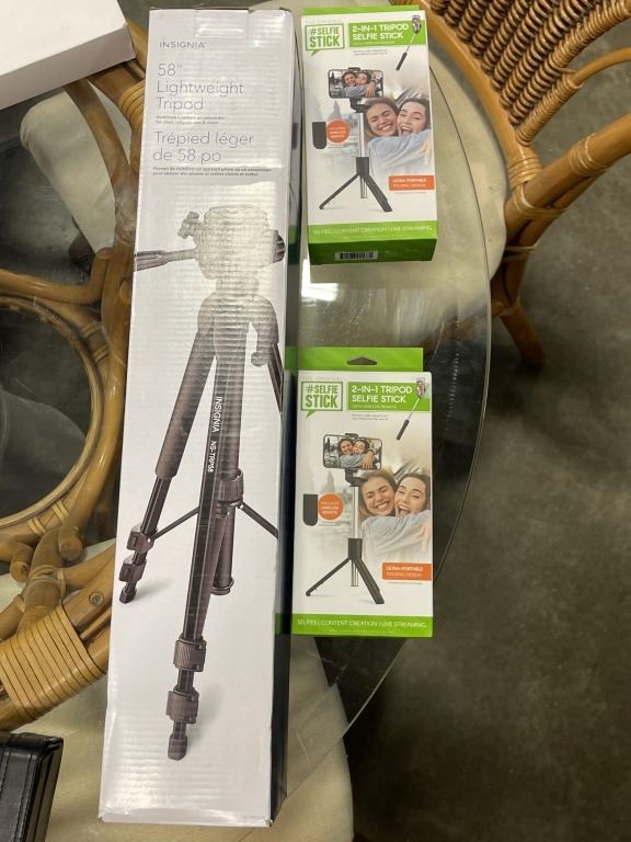 INSIGNIA 58 INCH LIGHTWEIGHT TRIPOD AND 2 ORIGINAL SELFIE STICKS, 2 IN 1