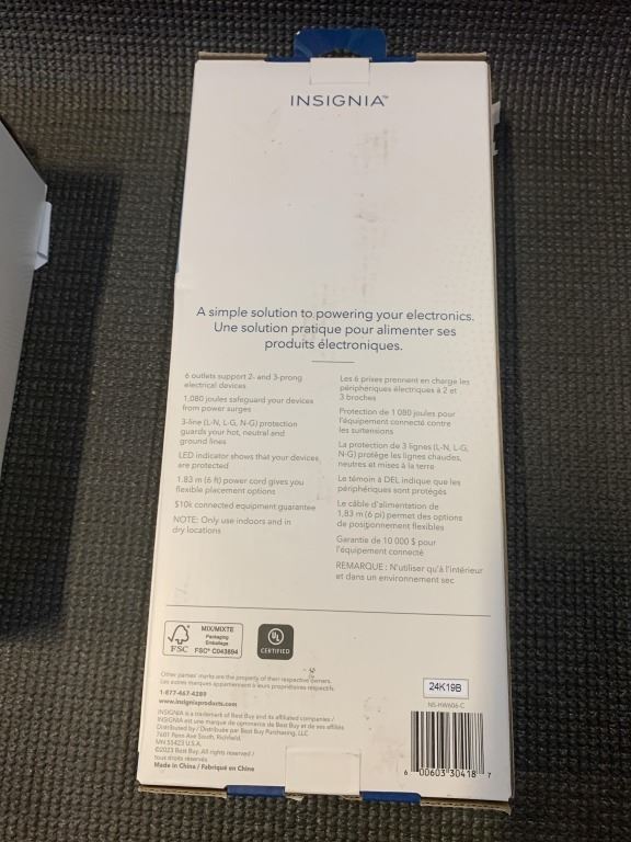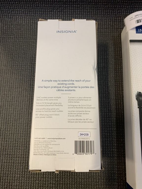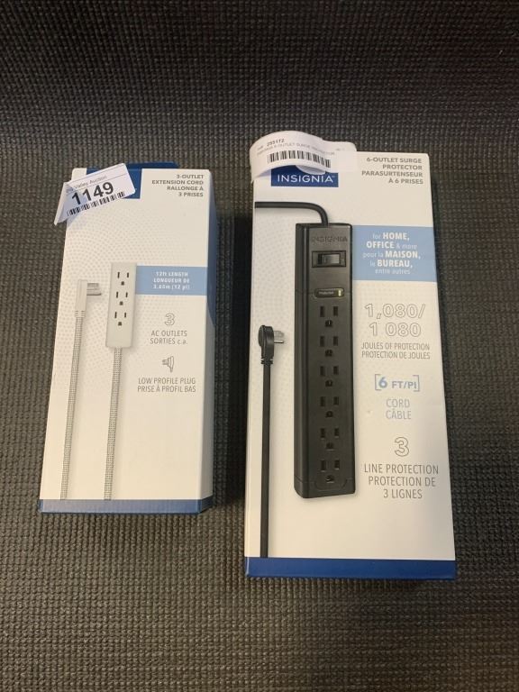 INSIGNIA 6 OUTLET SURGE PROTECTOR POWER BAR WITH 6FT CORD AND 12FT 3 OUTLET FLAT PLUG EXTENSION CORD