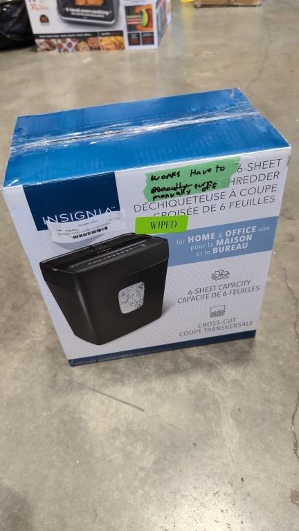 INSIGNIA 6 SHEET CROSS CUT SHREDDER - TESTED WORKING HAVE TO MANUALLY SHUT OFF