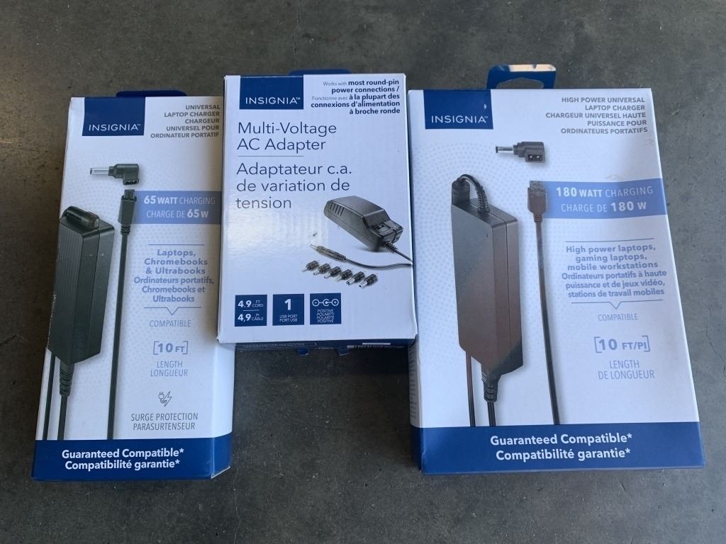 INSIGNIA HIGH POWER 180 WATT UNIVERSAL LAPTOP CHARGER, 65 WATT LAPTOP CHARGER AND MULTI VOLTAGE AC ADAPTER