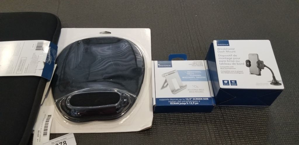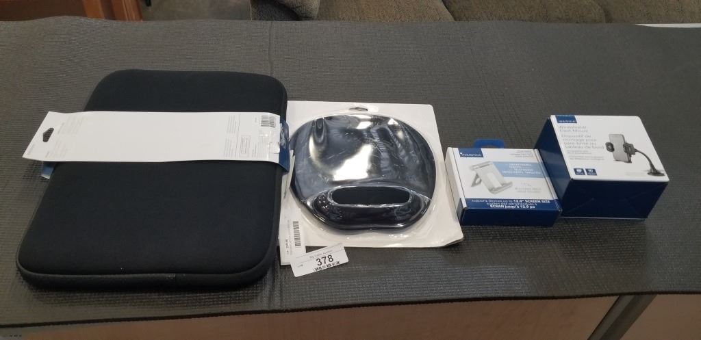 INSIGNIA LAPTOP SLEEVE PROTECTOR, MOUSE PAD WITH WRSUPPORT, ADJUSTABLE TABLET STAND AND WINDSHIELD / DASH MOUNT PHONE HOLDER