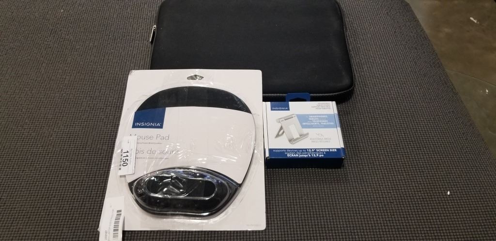 INSIGNIA LAPTOP SLEEVE PROTECTOR, MOUSE PAD WITH WRSUPPORT, ADJUSTABLE TABLET STAND AND WINDSHIELD / DASH MOUNT PHONE HOLDER