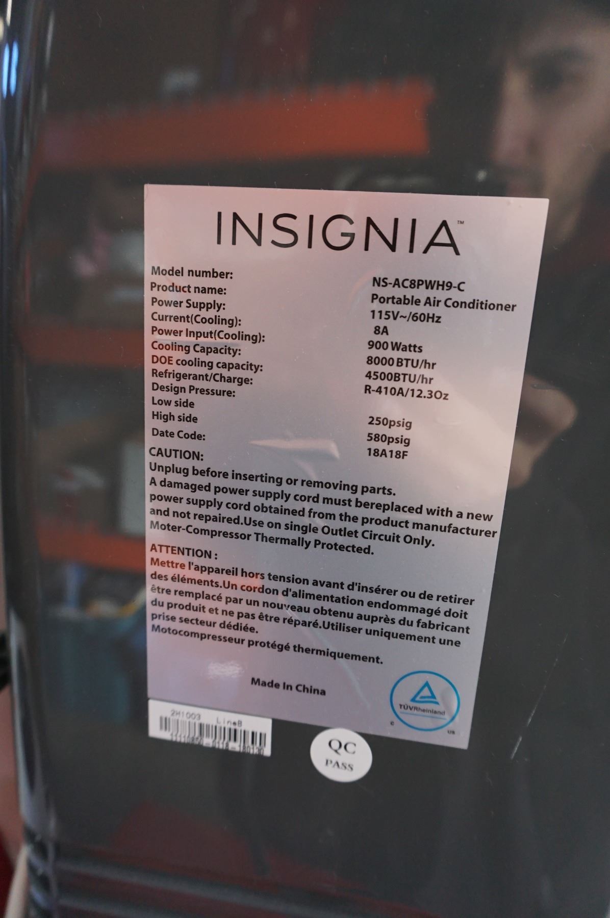 INSIGNIA PORTABLE AIR CONDITIONER, 8,000 BTU, WITH HOSE