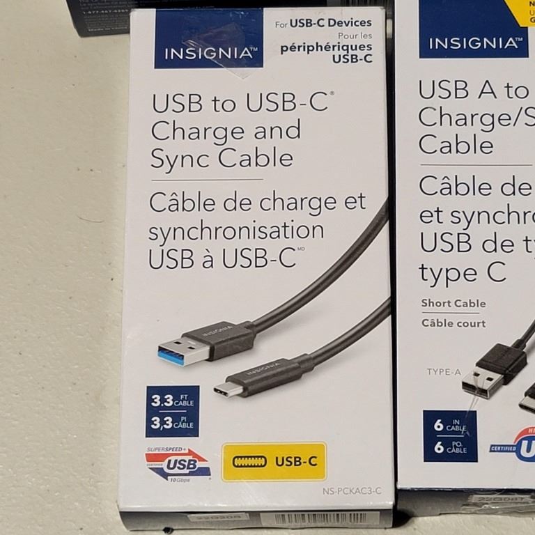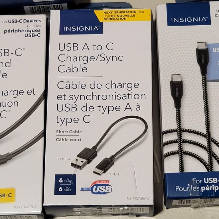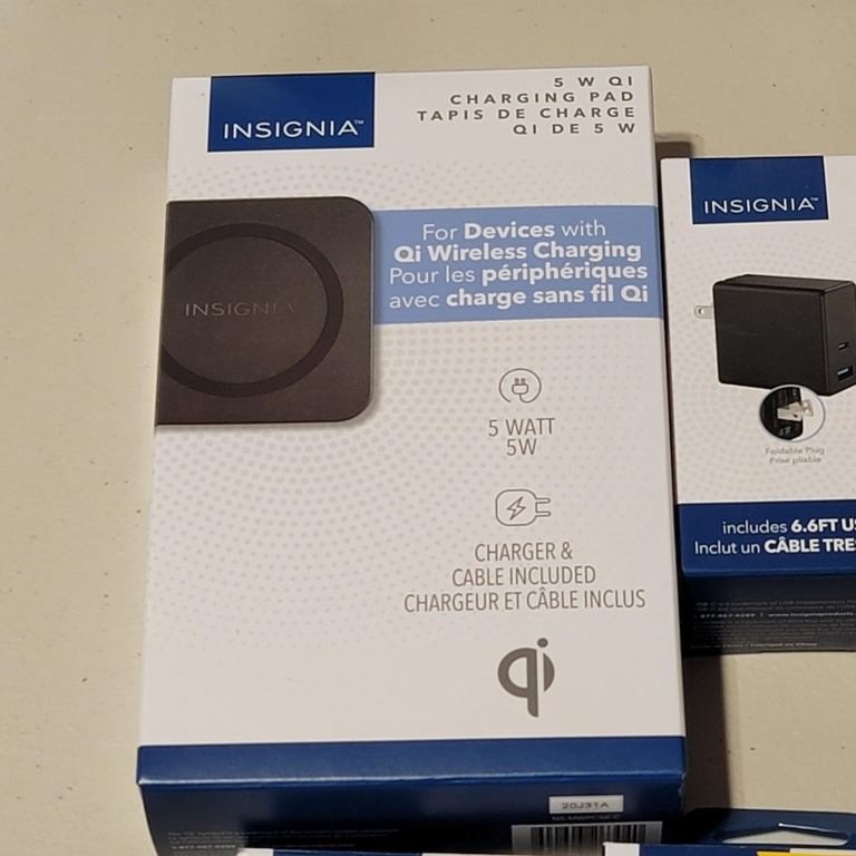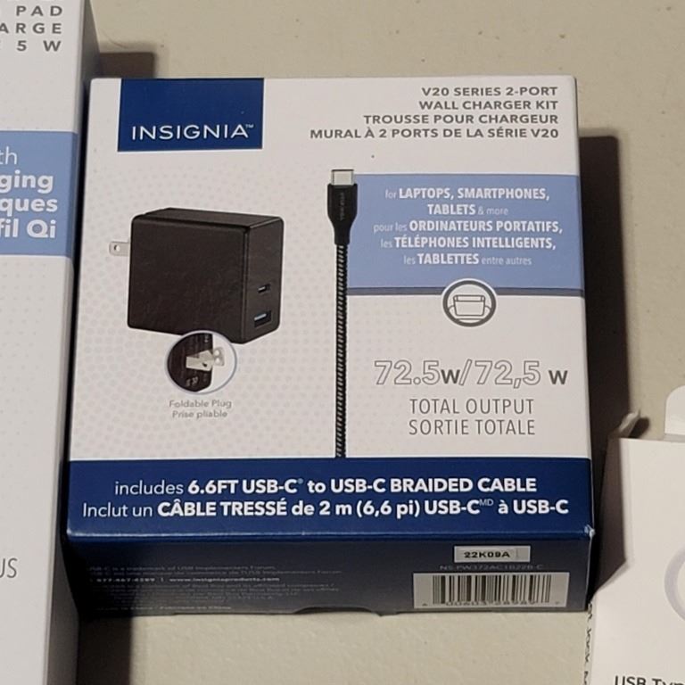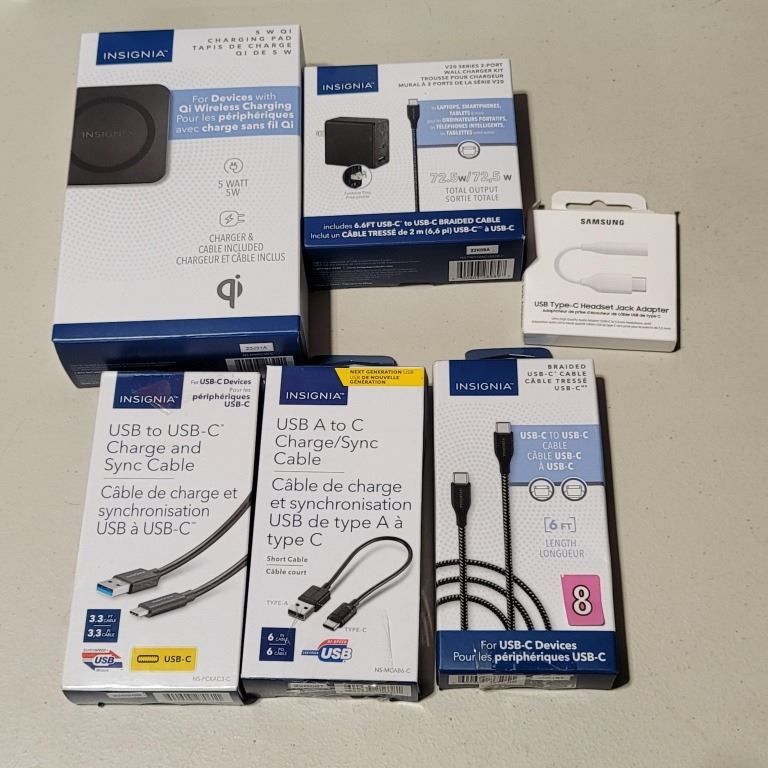 INSIGNIA QI CHARGING PAD WITH LOT OF AS NEW USB-C CHARGING CORDS AND ADAPTER