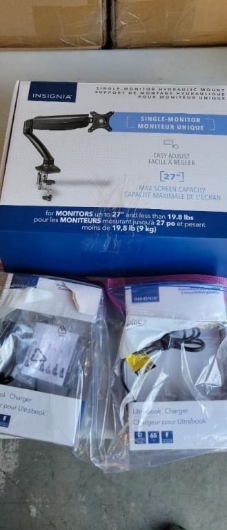 INSIGNIA SINGLE ARM HYDRAULIC MONITOR MOUNT WITH ULTRABOOK CHARGERS OPEN BOX