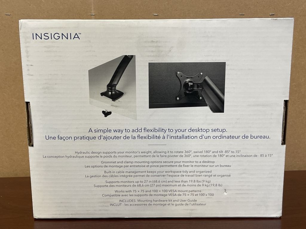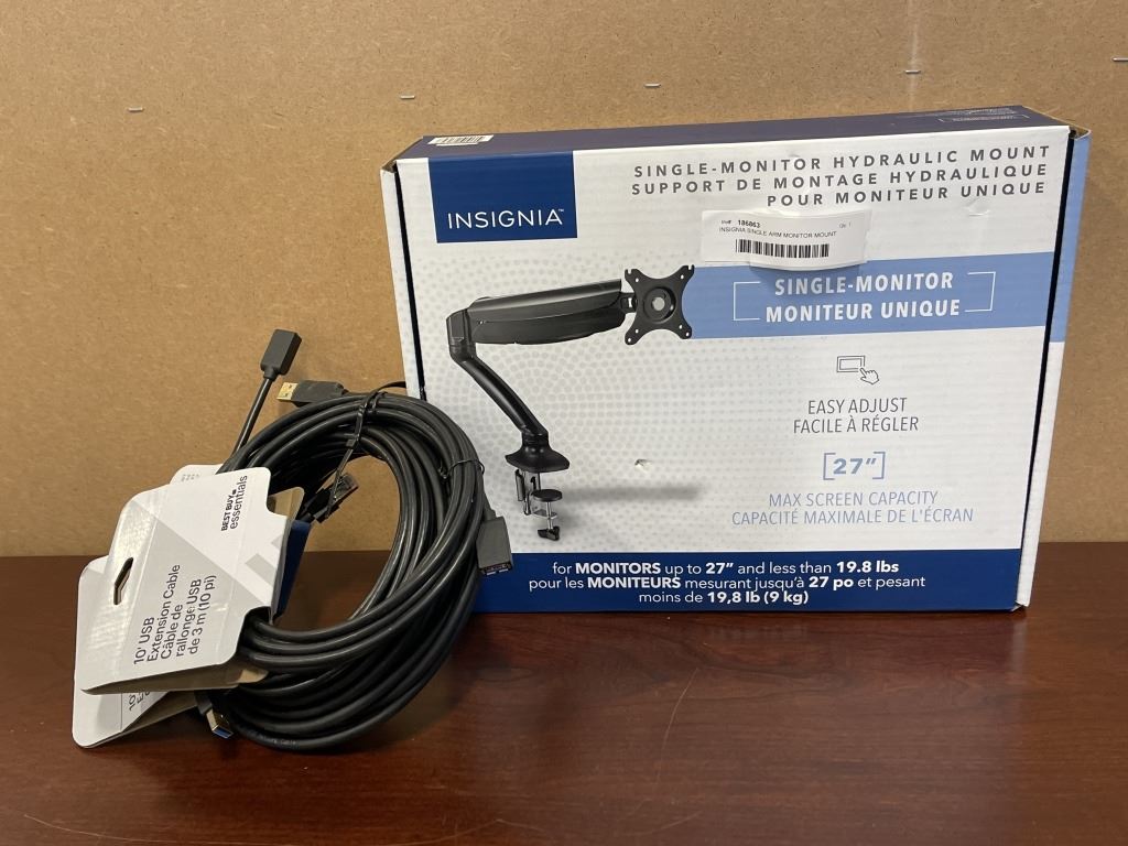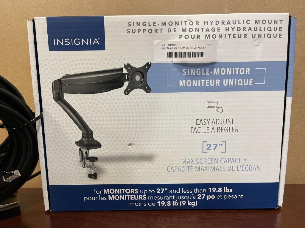 INSIGNIA SINGLE ARM MONITOR MOUNT WITH CAT 7 CABLE AND USB EXTENTION CORD