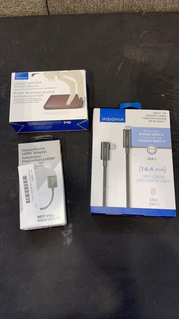 INSIGNIA USB-C VR HEADSET CABLE, INSIGNIA LAPTOP HARD DRIVE AND DISPLAY PORT TO HDMI ADAPTER