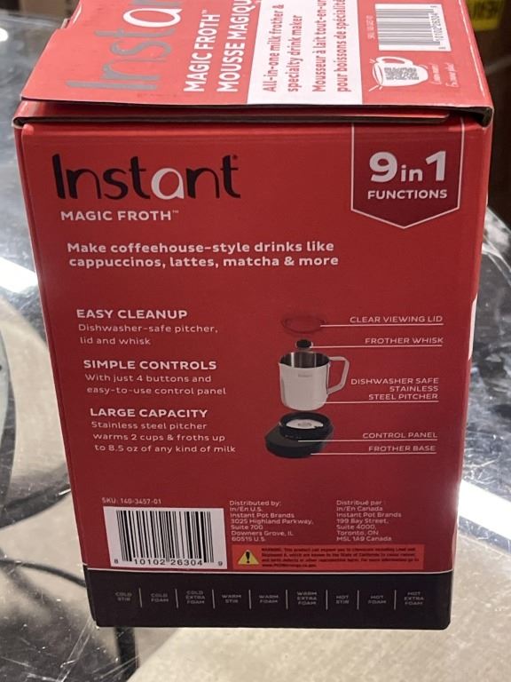 INSTANT POT 9-IN-1 17OZ MILK FROTHER - TESTED WORKING, RETAIL $99