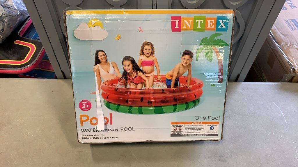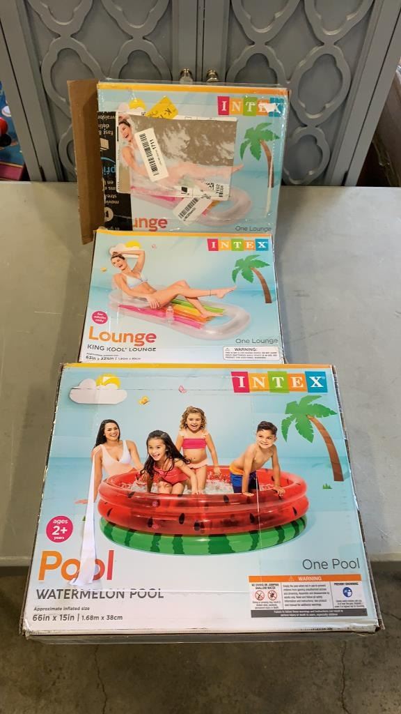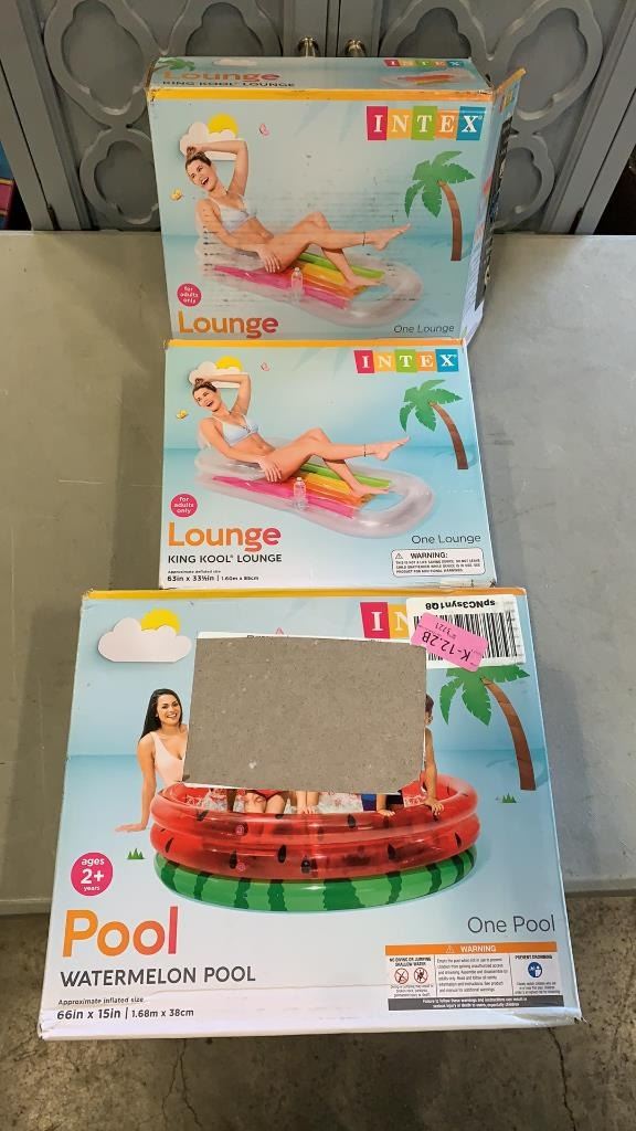 INTEX WATERMELON POOL AND 2 INFLATABLE LOUNGERS