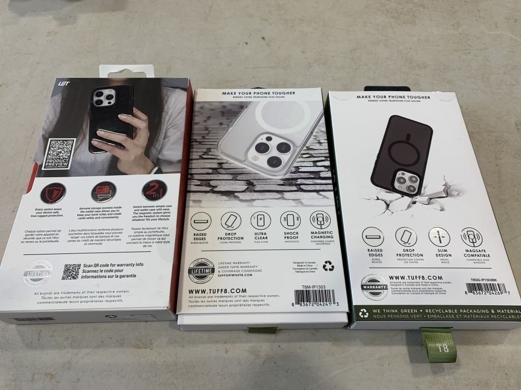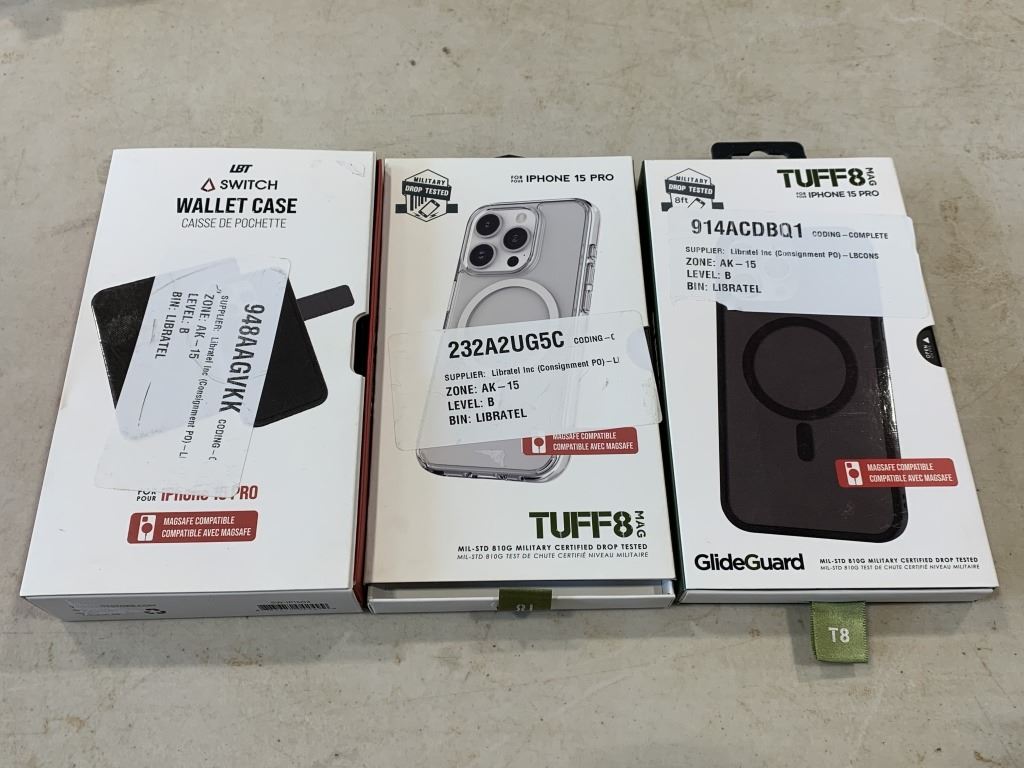 IPHONE 15 PRO WALLET CASE AND 2 CASES