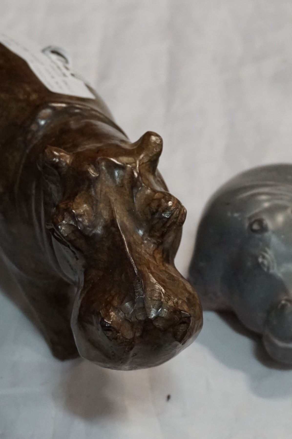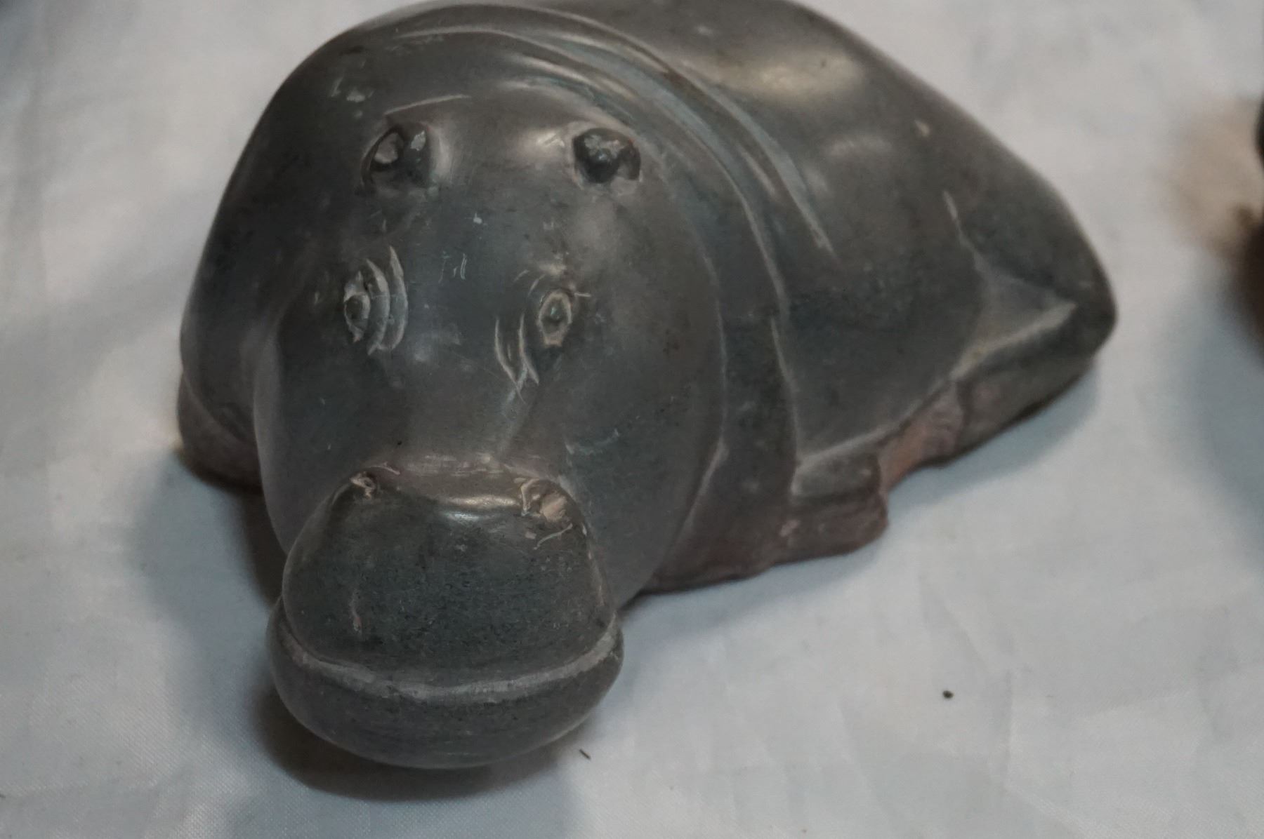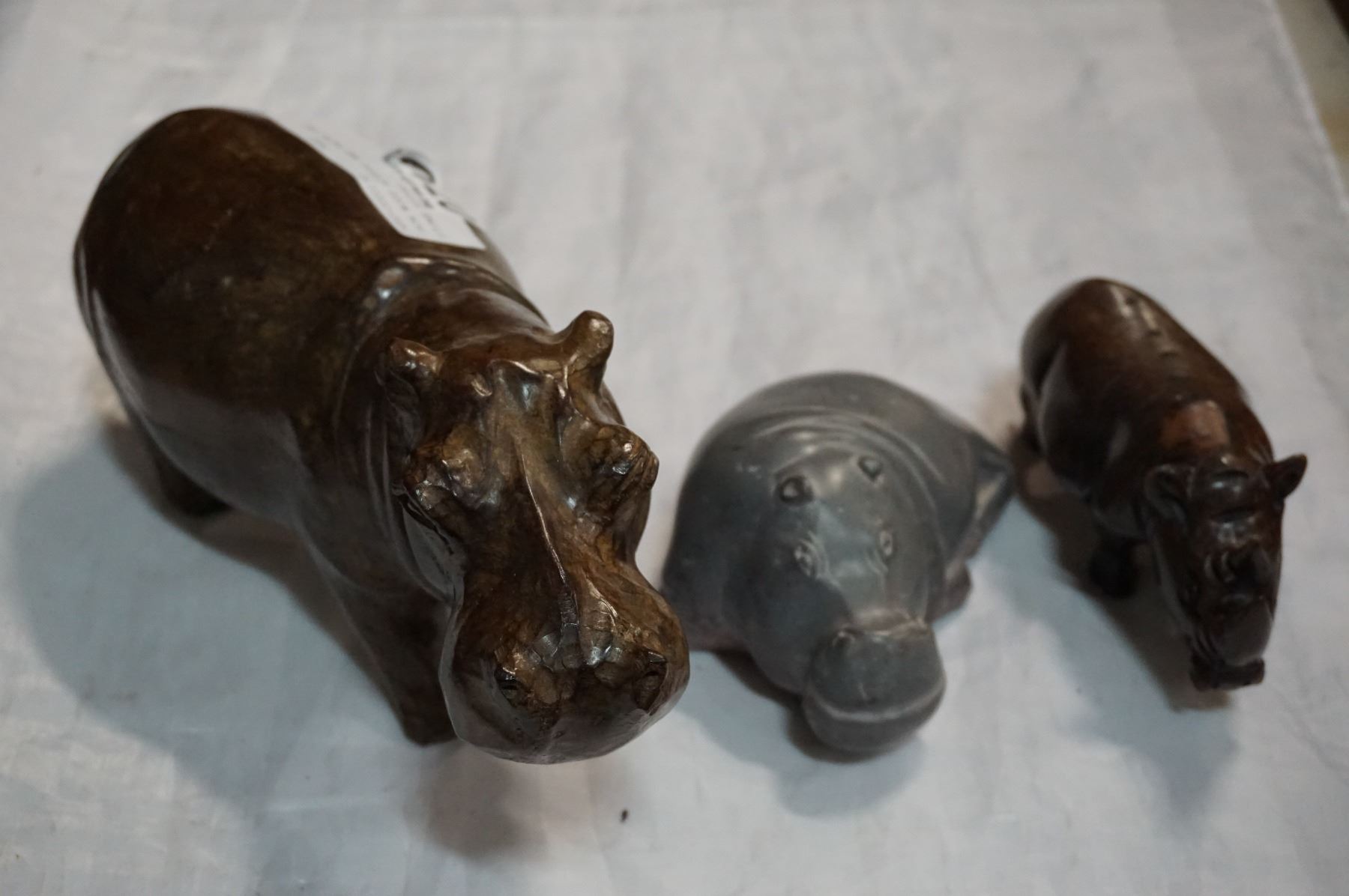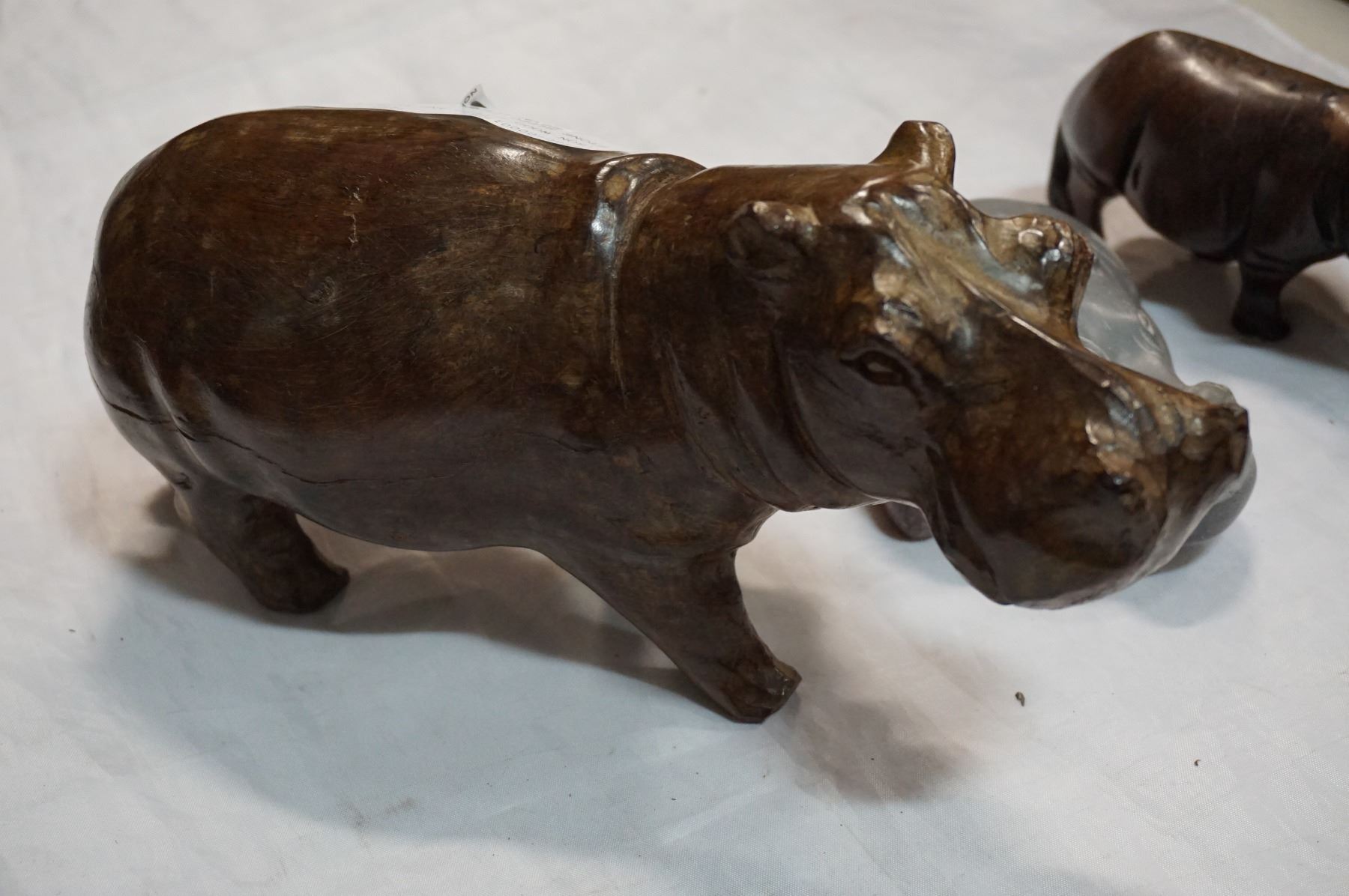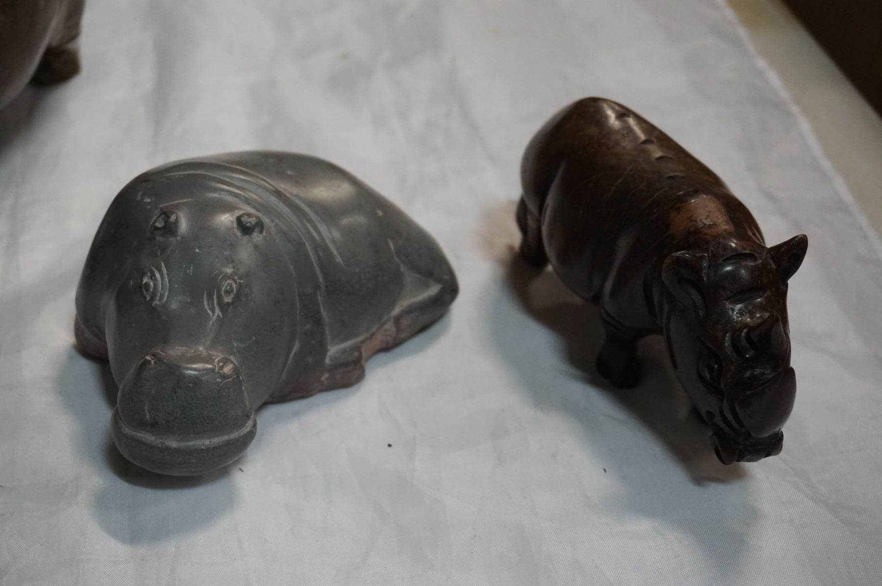 IRON WOOD HIPPPO AND RHINO AND STONE HIPPO