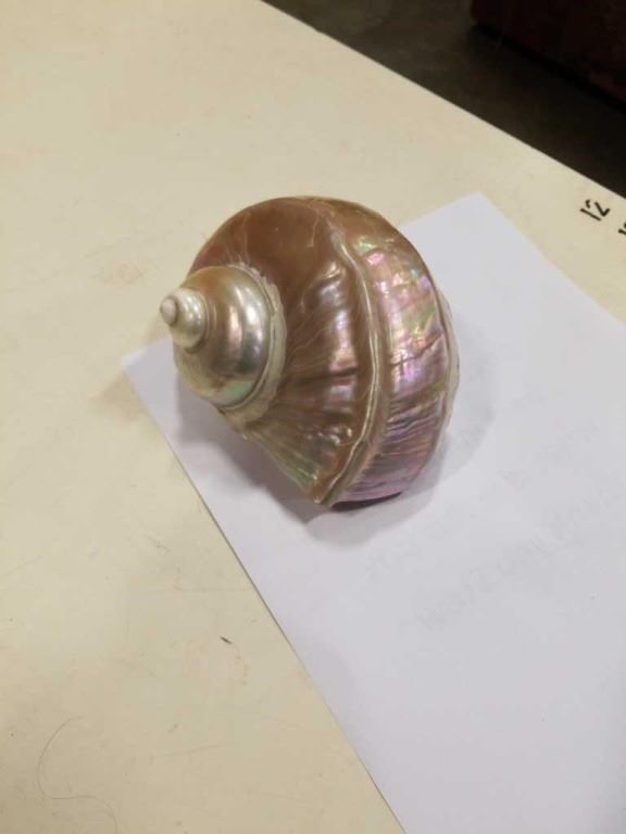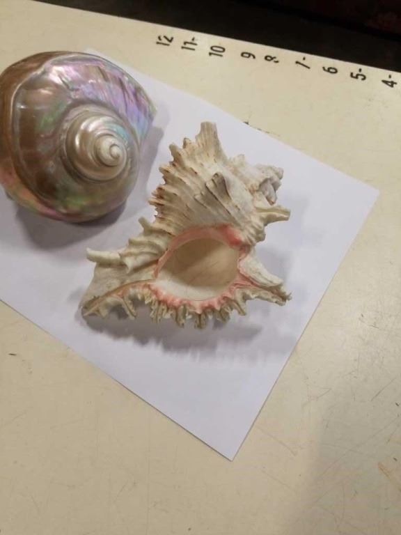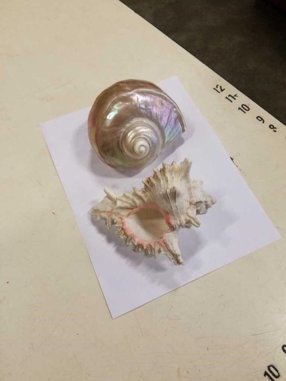 IRRIDESCENT HERMIT CRAB SHELL AND CONCH SHELL