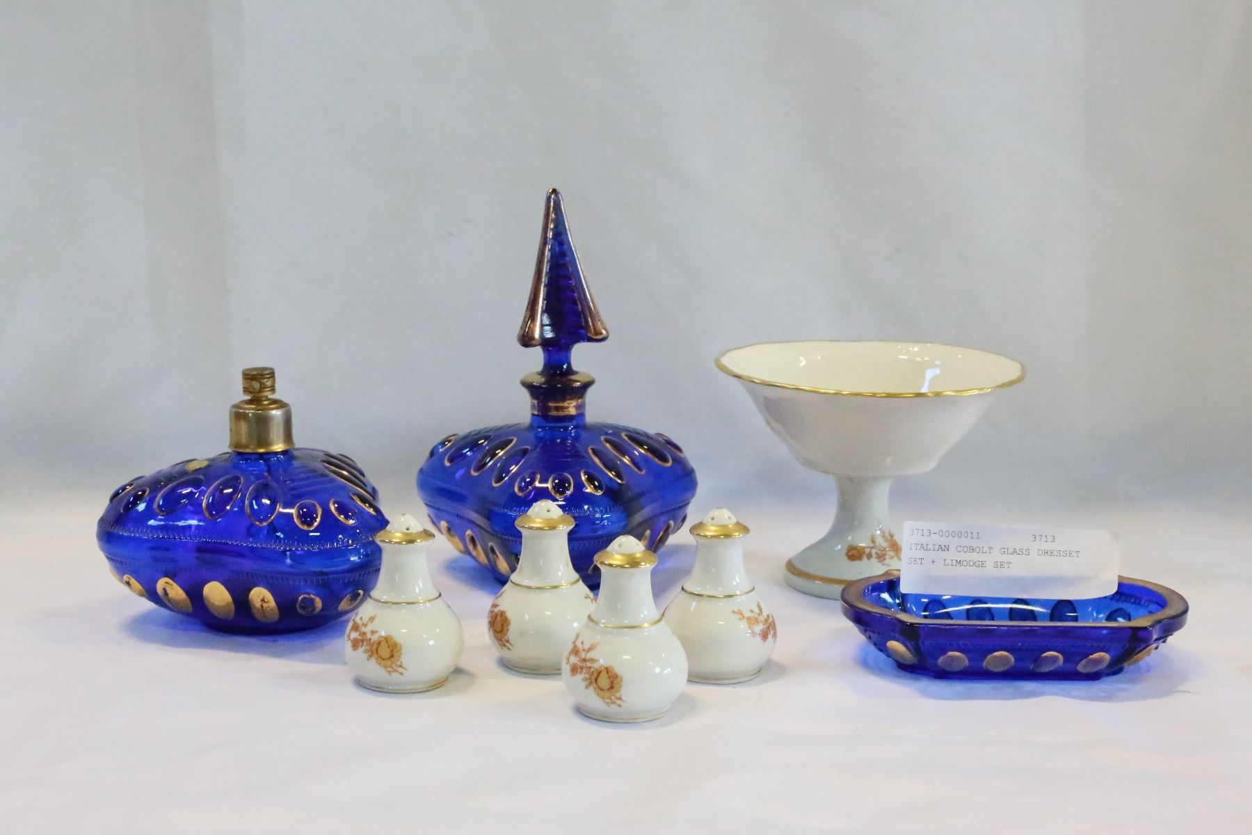 ITALIAN COBOLT GLASS DRESSET SET + LIMODGE SET