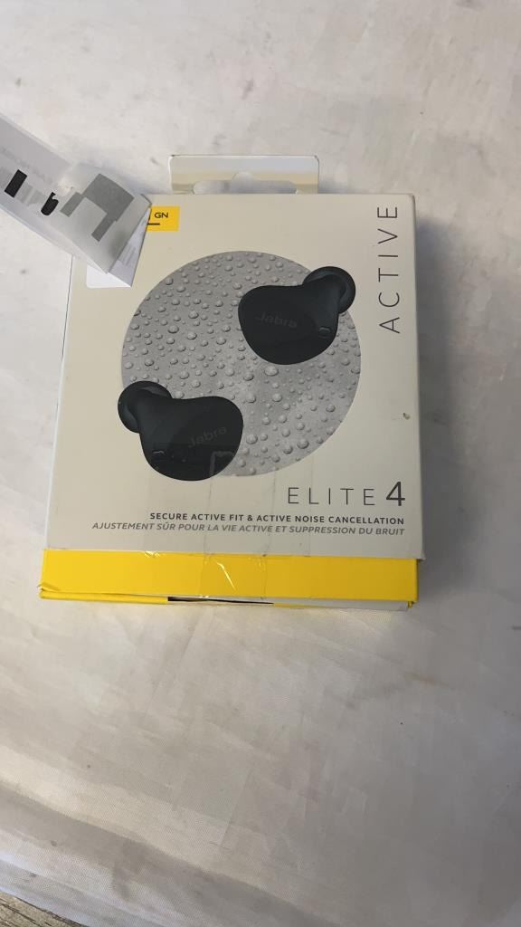 JABRA ELITE 4 ACTIVE IN EAR NOISE CANCELLING WIRELESS HEADPHONES - TESTED WORKING, RETAIL $149