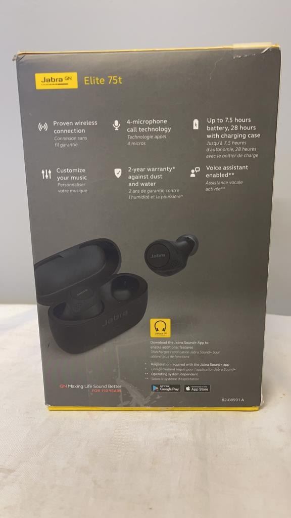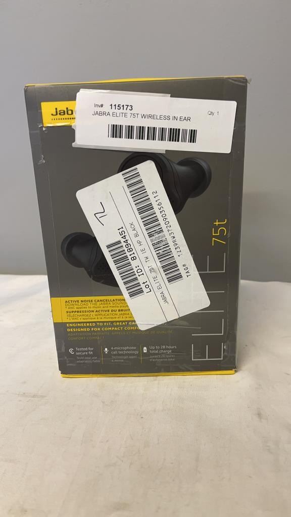 JABRA ELITE 75T WIRELESS IN EAR HEADPHONES - TESTED WORKING - RETAIL $259