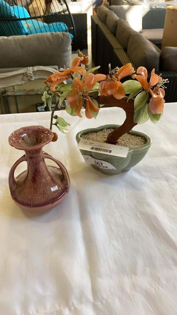 JADE TREE AND CERAMIC VASE MADE IN JAPAN