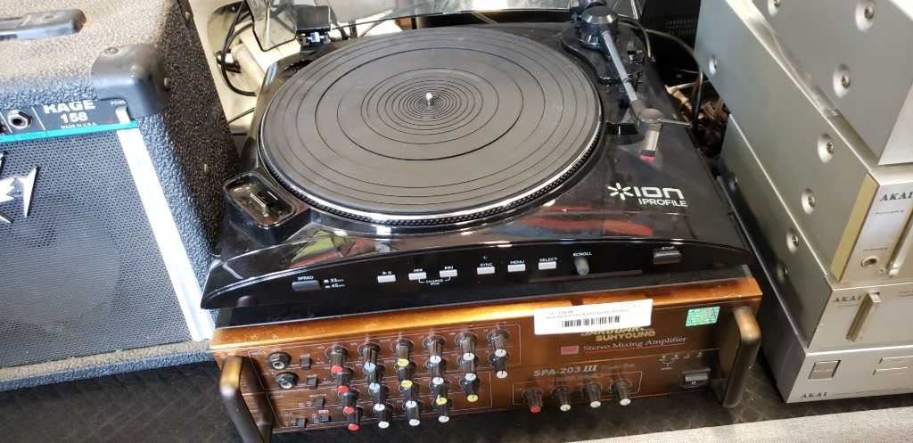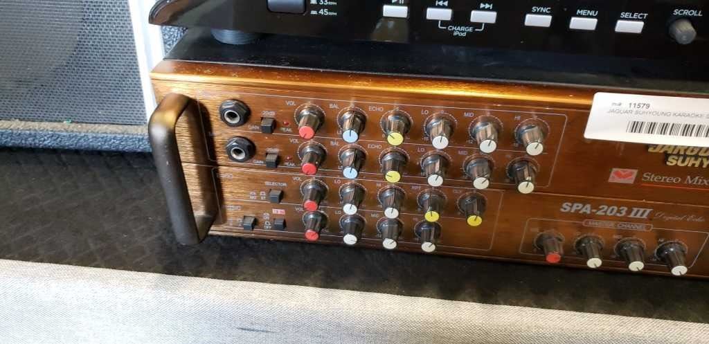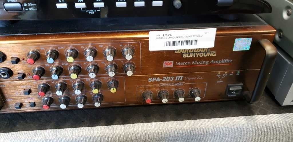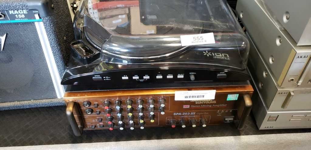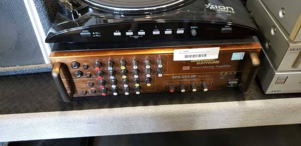 JAGUAR SUHYOUNG KARAOKE STEREO MIXING AMPLIFIER WITH ECHOAND ION PROFILE RECORD PLAYER WITH IPOD DOCK