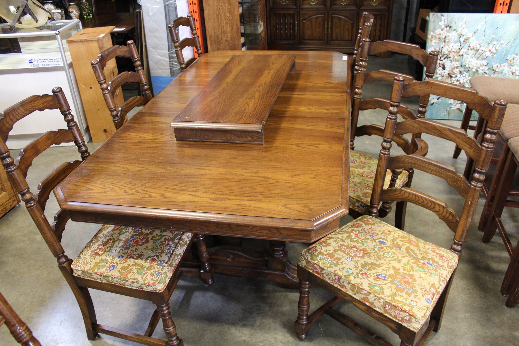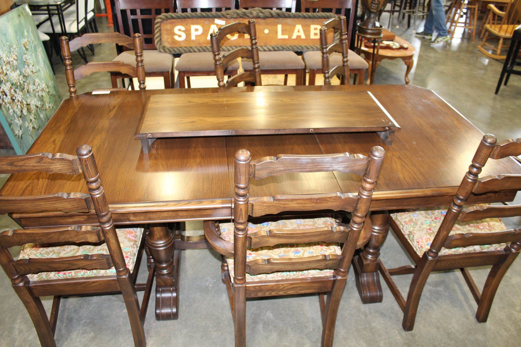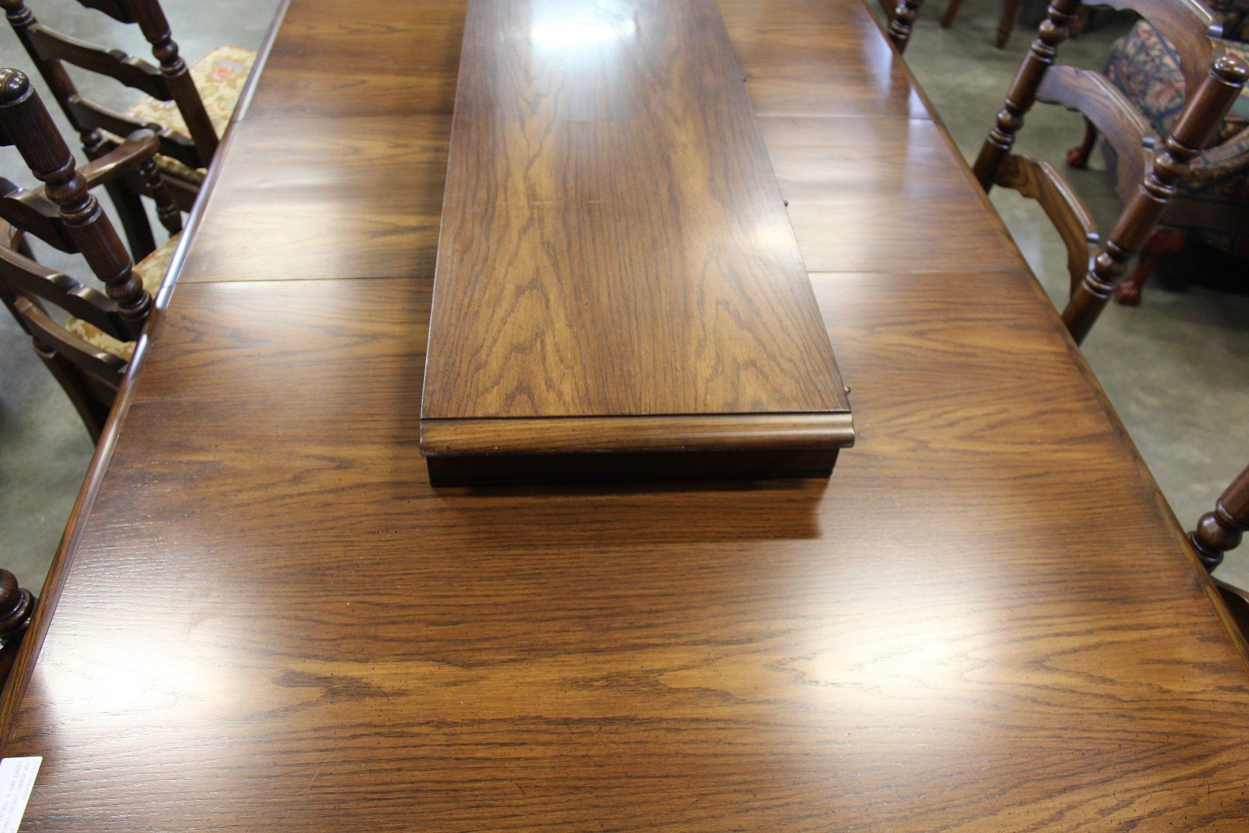 JAN EDENS DINING TABLE W/ 2 LEAFS AND 6 CHAIRS