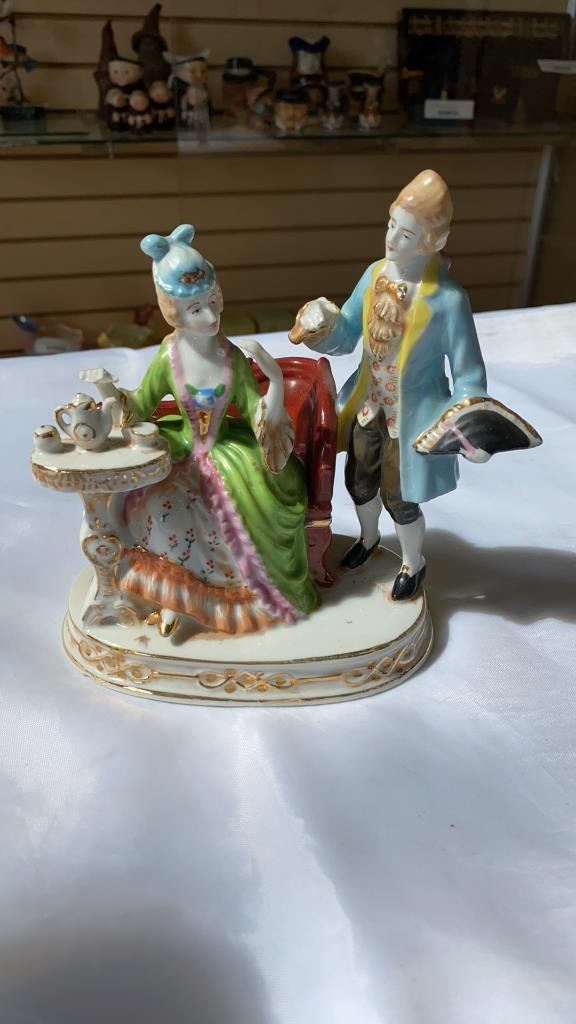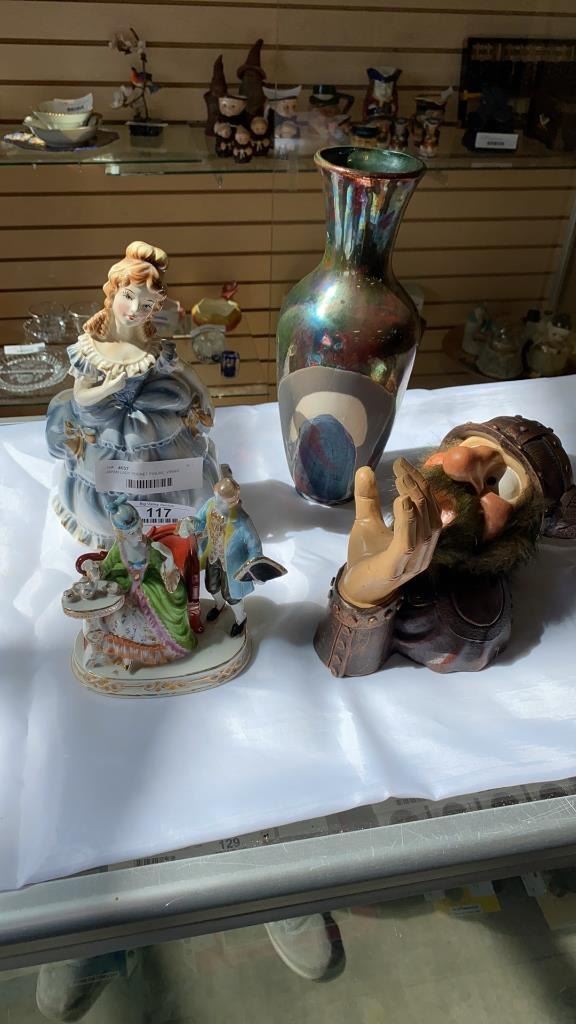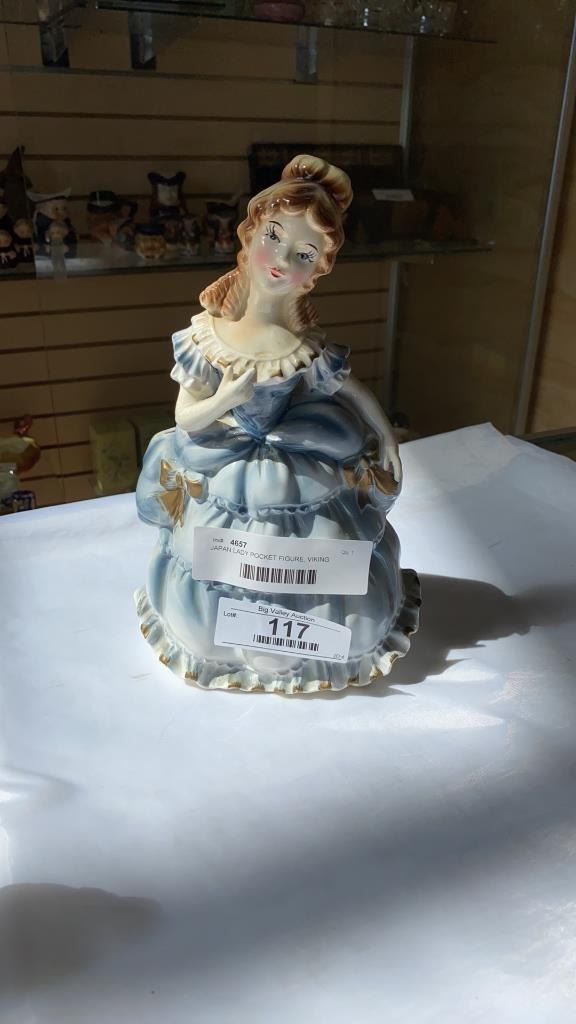 JAPAN LADY POCKET FIGURE, VIKING BOTTLE HOLDER, VASE AND FIGURES