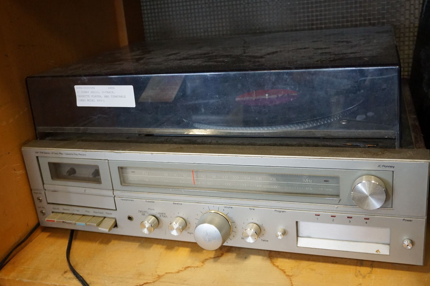 JC PENNY RADIO, 8-TRACK, CASSETTE PLAYER, AND TURNTABLE COMBO MODEL 683-1