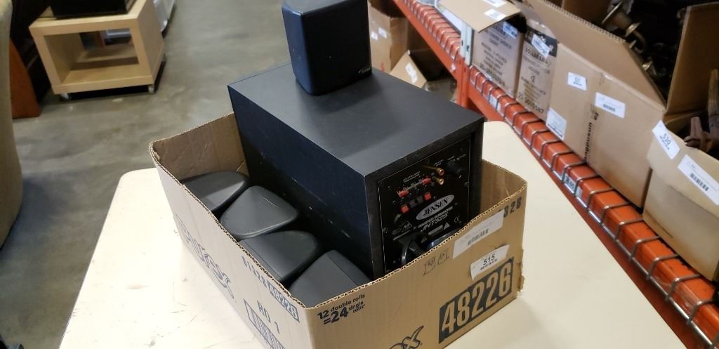 JENSEN POWERED SUBWOOFER AND 5 SPEAKERS
