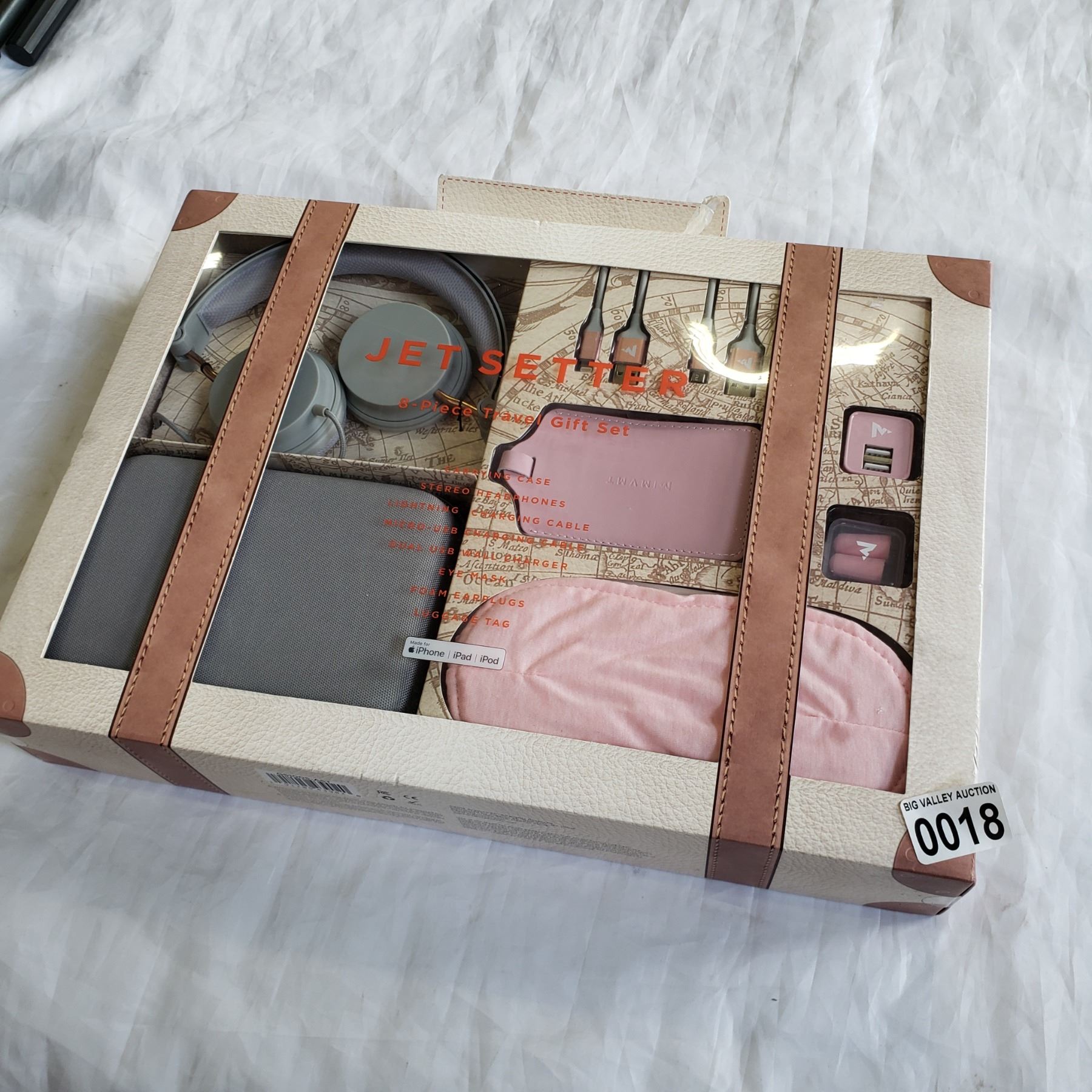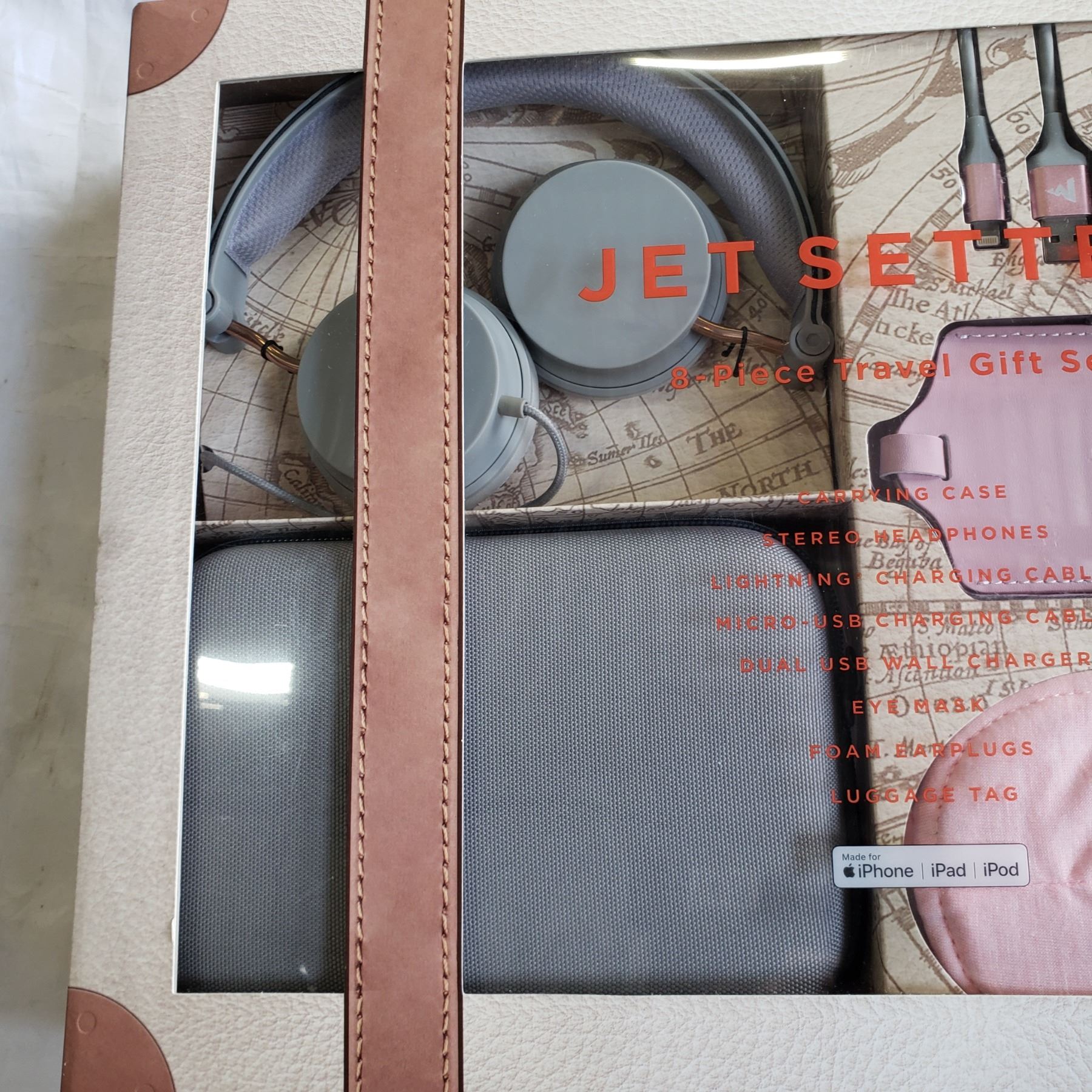 JET SETTER 8 PIECE TRAVEL GIFT SET FOR IPHONE/IPAD/IPOD, CHARGING CABLES, HEADPHONES AND CASES