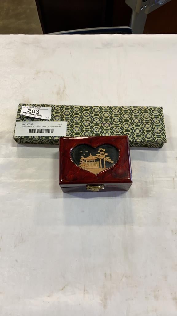 JEWELLERY BOX AND TRAY OF JEWELLERY