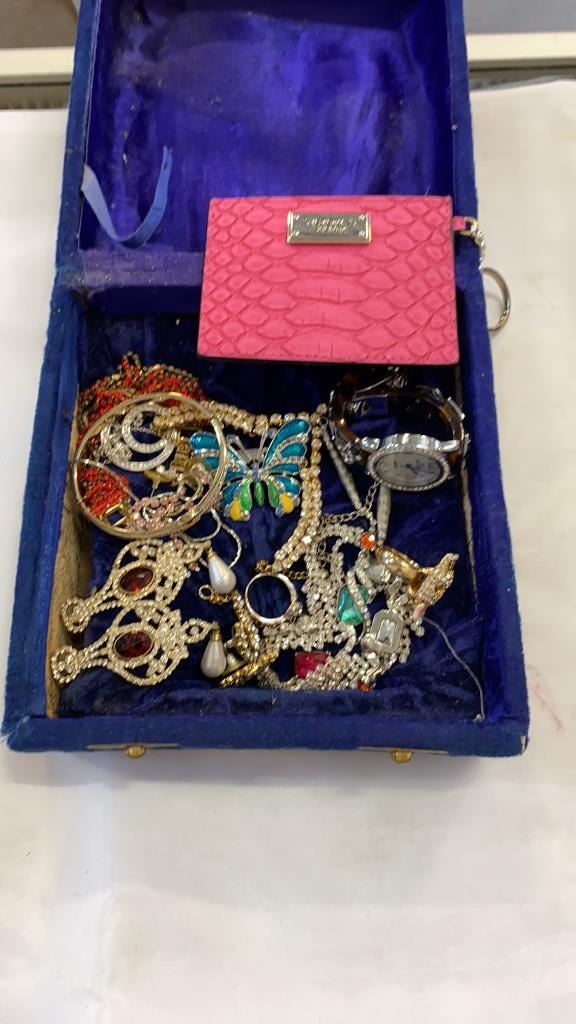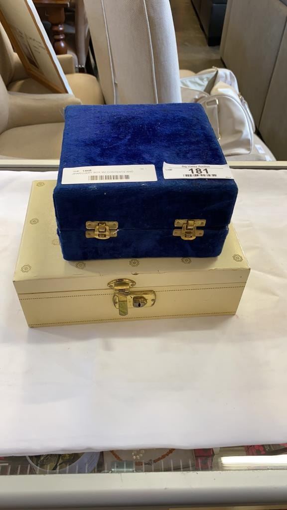 JEWELLERY BOX W/ CONTENTS AND JEWELLERY CASE W/ RHINESTONE JEWELLERY