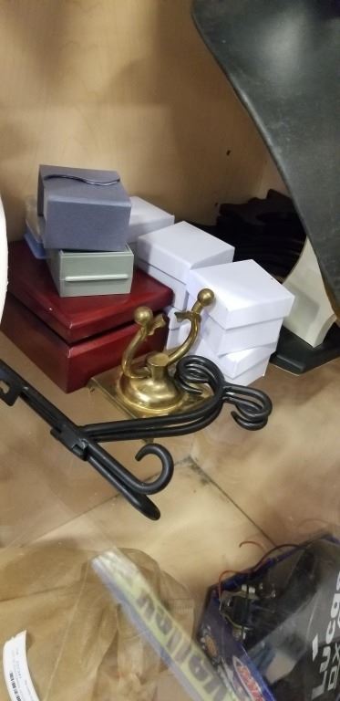 JEWELLERY STANDS, PLATE STANDS, RING BOXES