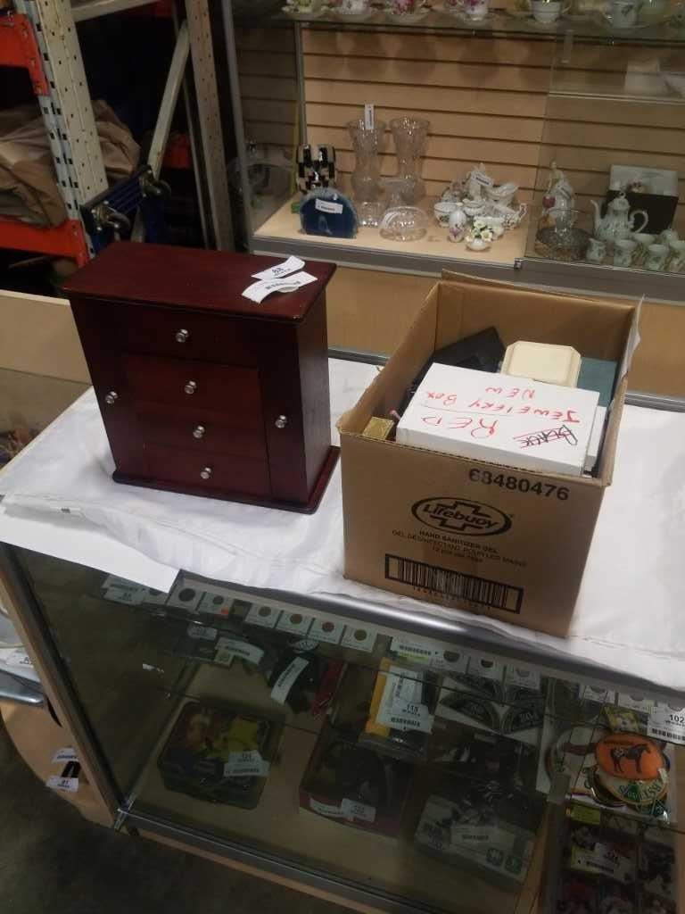 JEWELRY BOX WITH CONTENTS AND APPROX 50 EMPTY JEWELRY BOXES