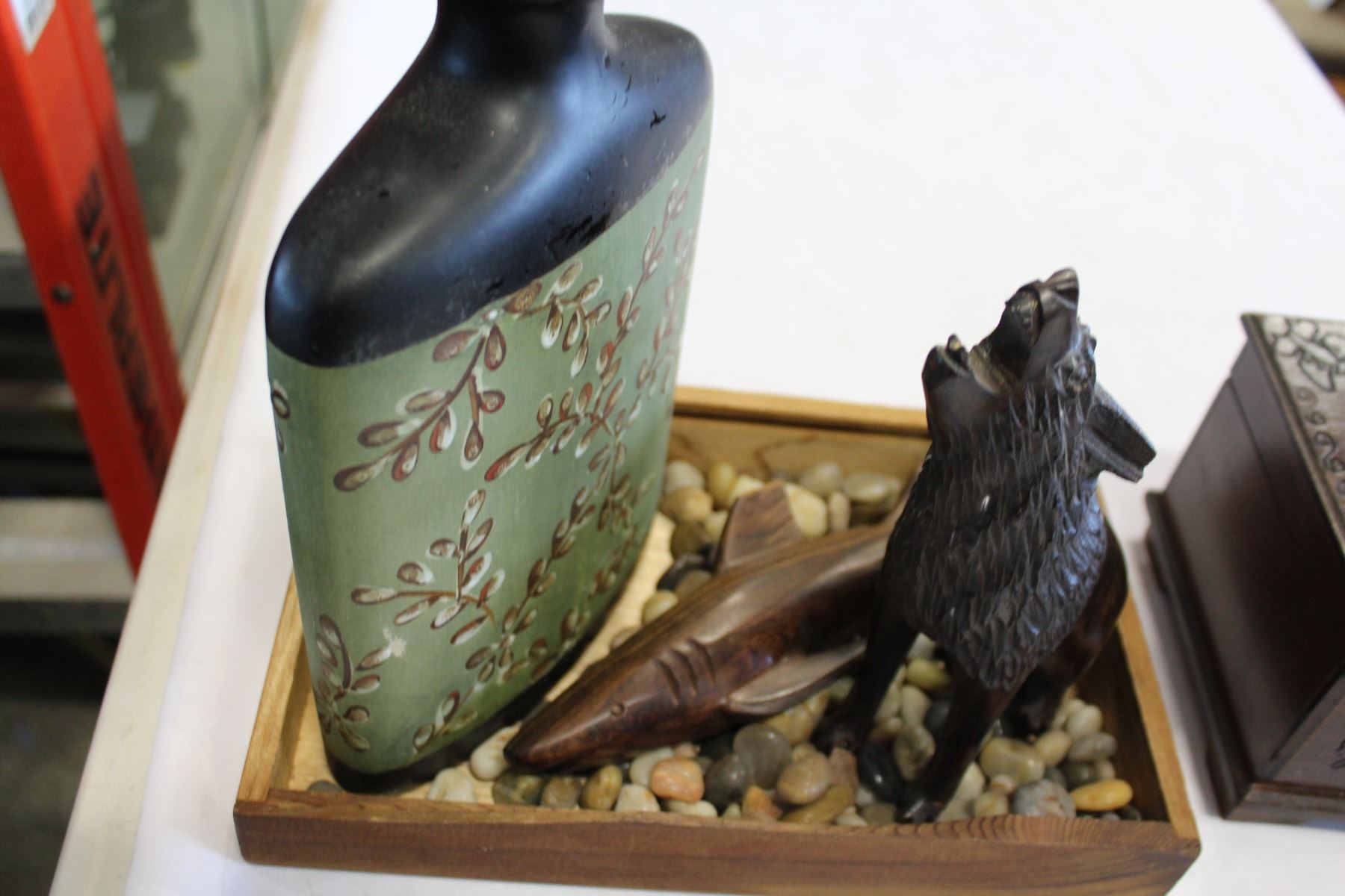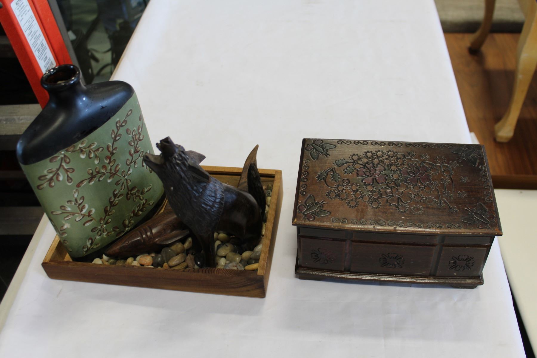 JEWELRY BOX WOLF FIGURE CASE AND STONES