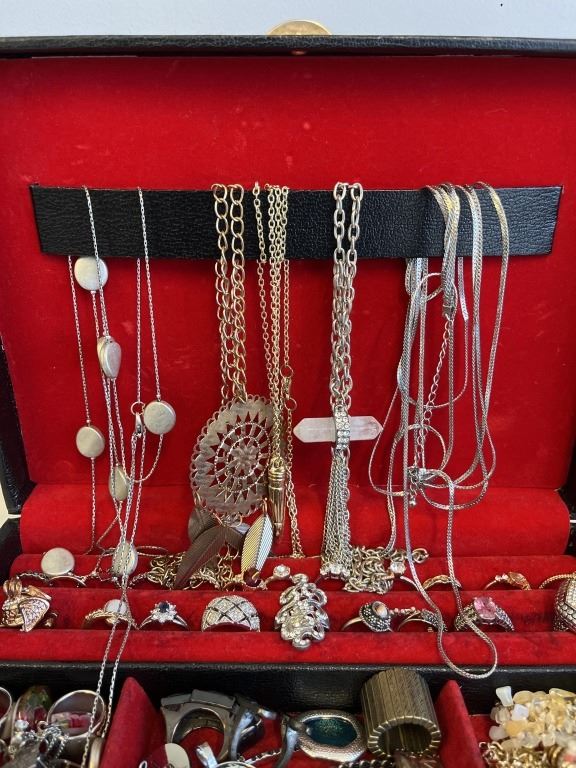 JEWELRY CASE W/ LOTS OF MISC CONTENTS