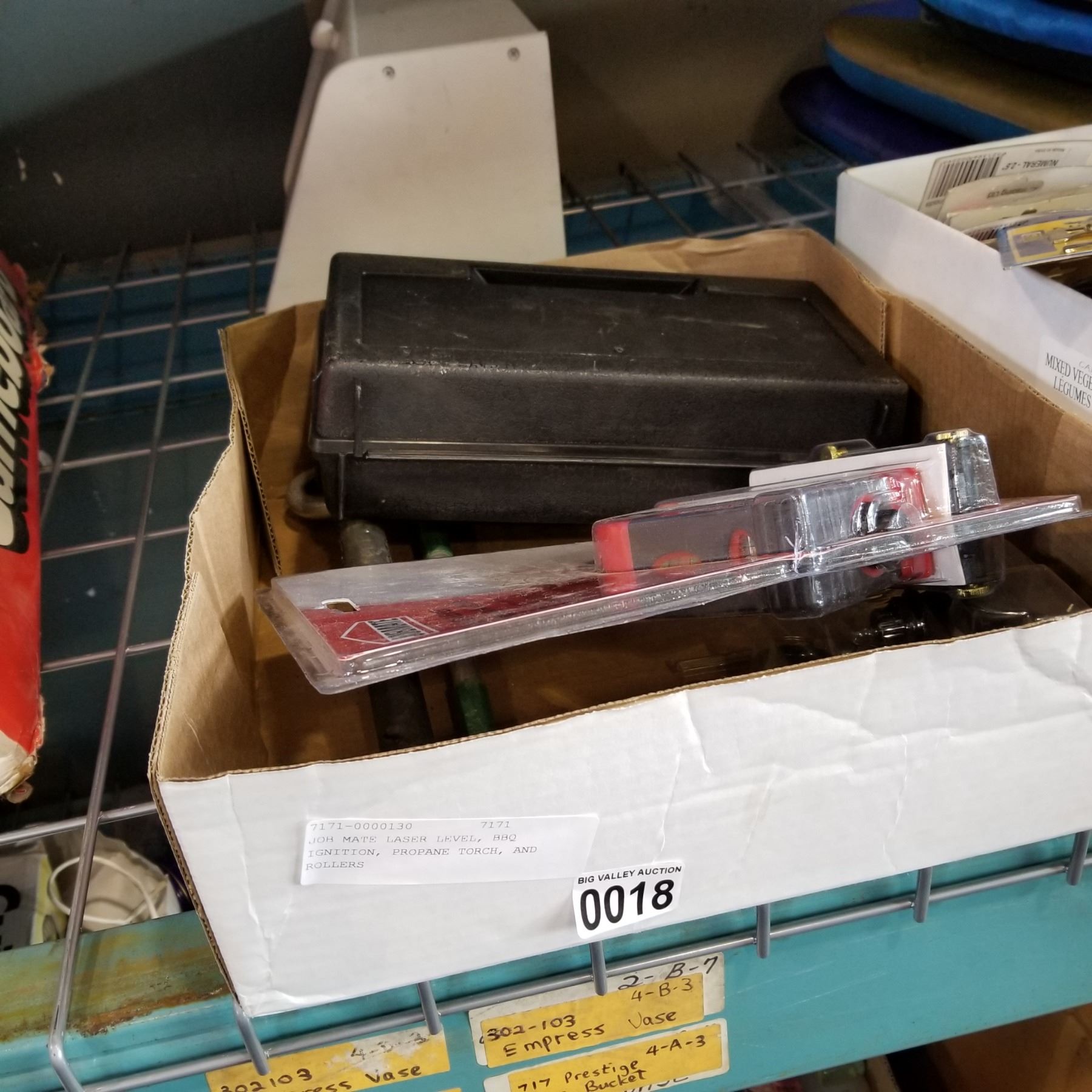 JOB MATE LASER LEVEL, BBQ IGNITION, PROPANE TORCH, AND ROLLERS
