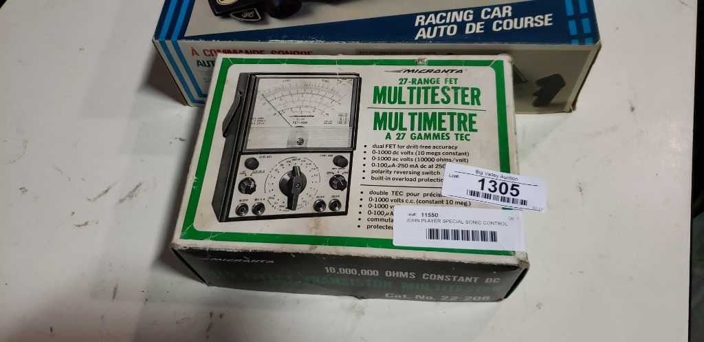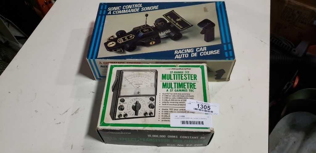 JOHN PLAYER SPECIAL SONIC CONTROL RACING CAR TOY AND MICRONTA MULTITESTER
