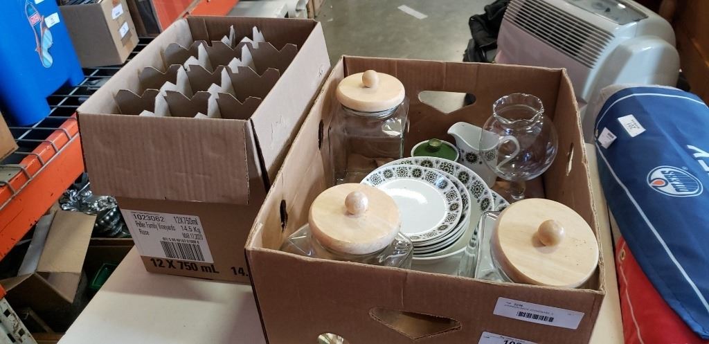 JOHNSON BROS STONEWARE, 3 CANNISTERS AND ETCHED GLASSES