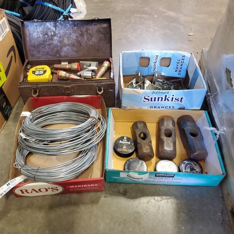 JOIST HANGERS, METAL WIRE AND ASSORTED TOOLS