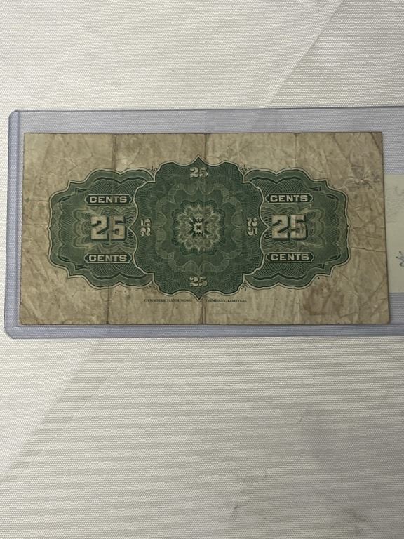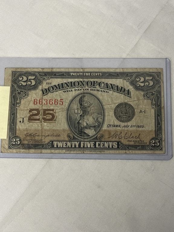 JULY 2 1923 DOMINION OF CANADA 25 CENT BILL