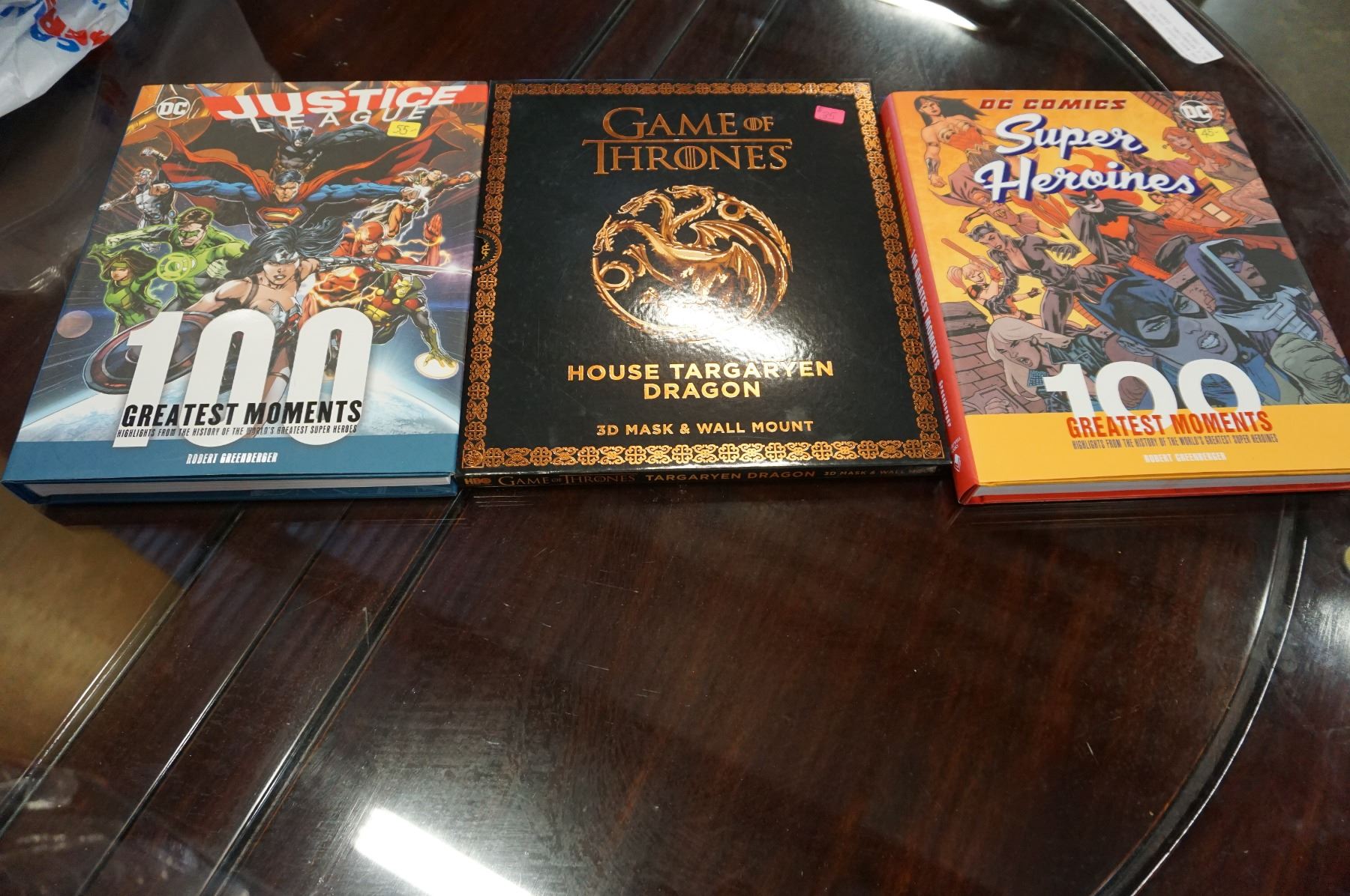 JUSTICE LEAGUE 100 GREATEST MOMENTS, DC COMICS SUPER HEROINES AND GAME OF THRONES, TARGARYEN DRAGON BOOKS
