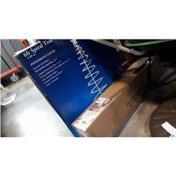 6FT SPIRAL TREE INDOOR/OUTDOOR - WORKS AND 4FT PRE LIT GREENFIELD PINE CHRISTMAS TREE IN BOX