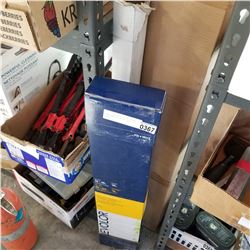BOX OF TOOLS, STAPLER, AND SUMP PUMP