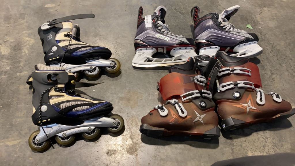 K2 ROLLER SKATES, BAUER VAPOR ICE SKATES AND LANGE SKI BOOTS