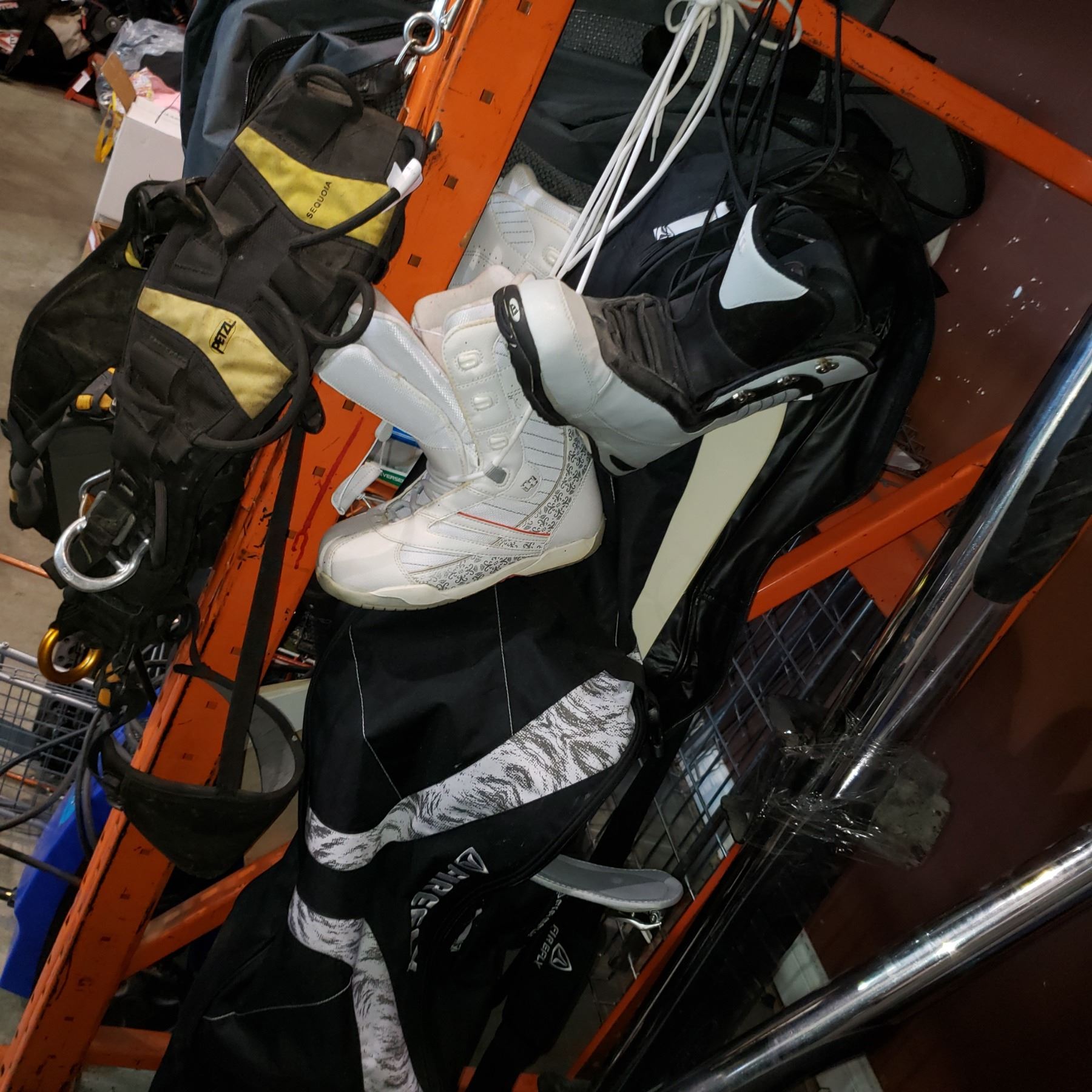 K2 SNOWBOARD W/ BINDINGS IN BAG AND 2 PAIRS OF BOOTS