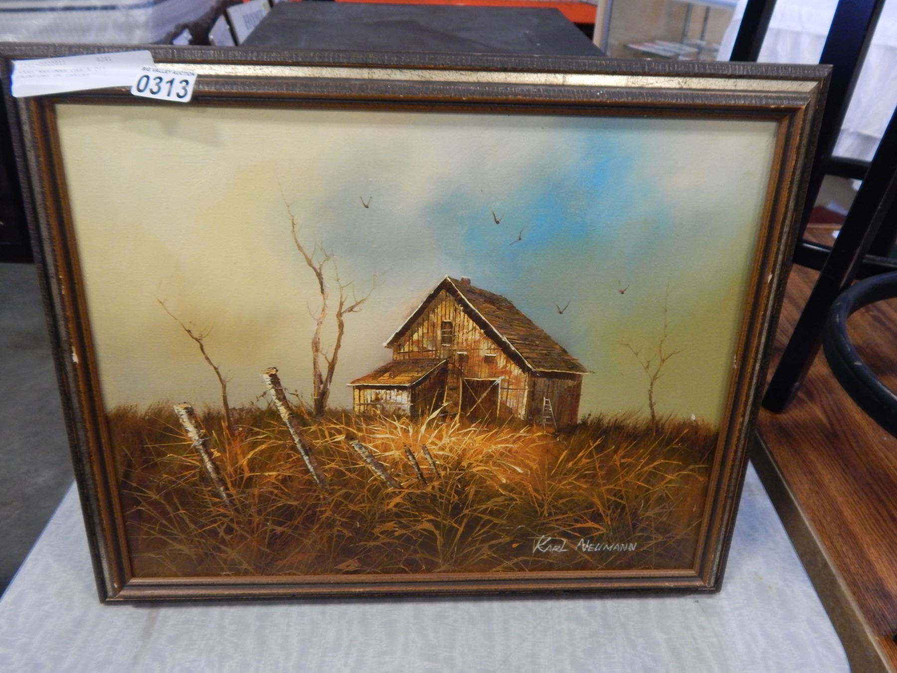 KARL NELLMAN CABIN OIL PAINTING ON CANVAS