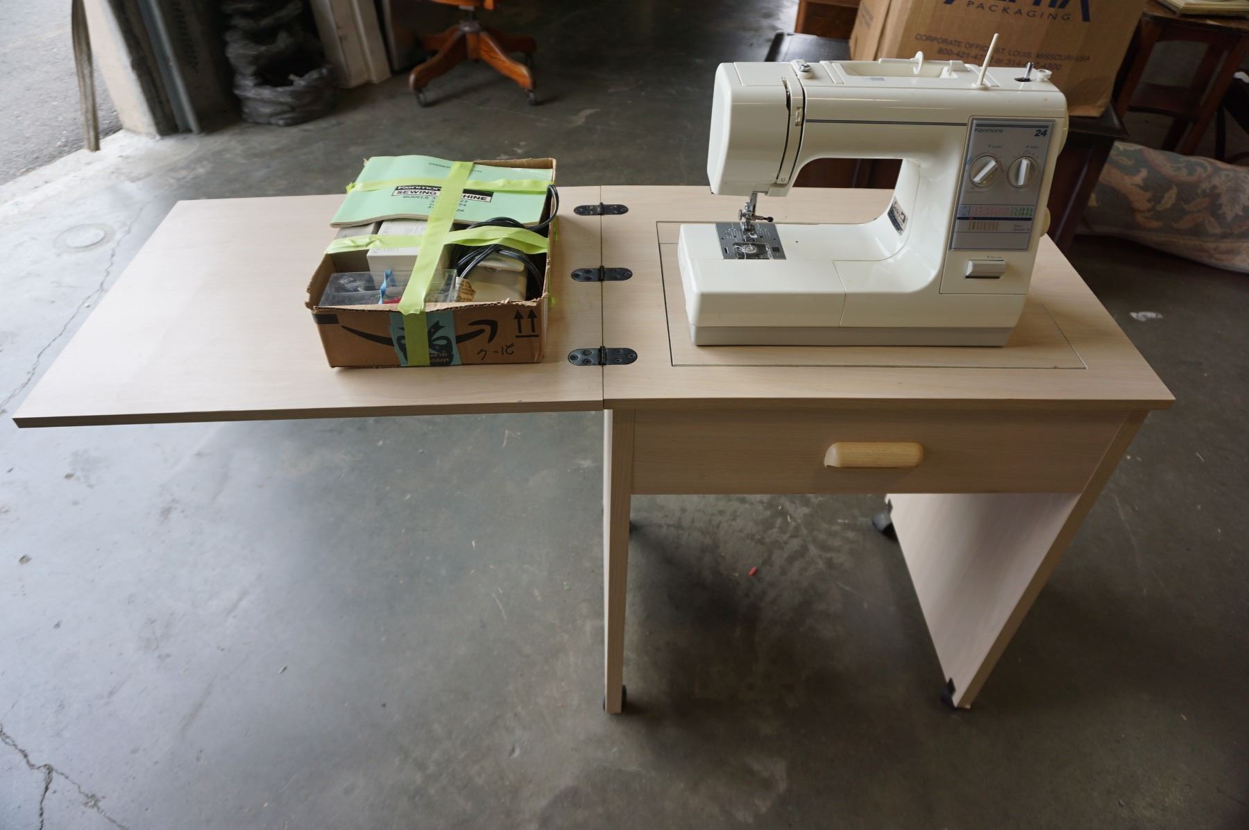 KENMORE 24 SEWING MACHINE IN TABLE W/ ACCESSORIES