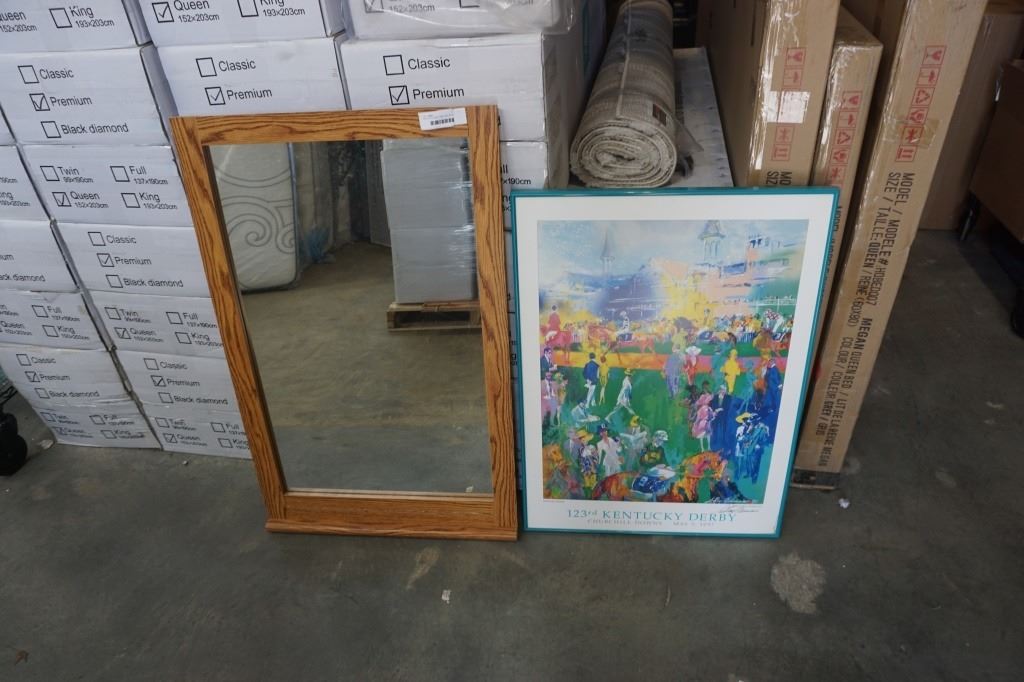 KENTUCKY DERBY PRINT AND WOOD FRAMED MIRROR