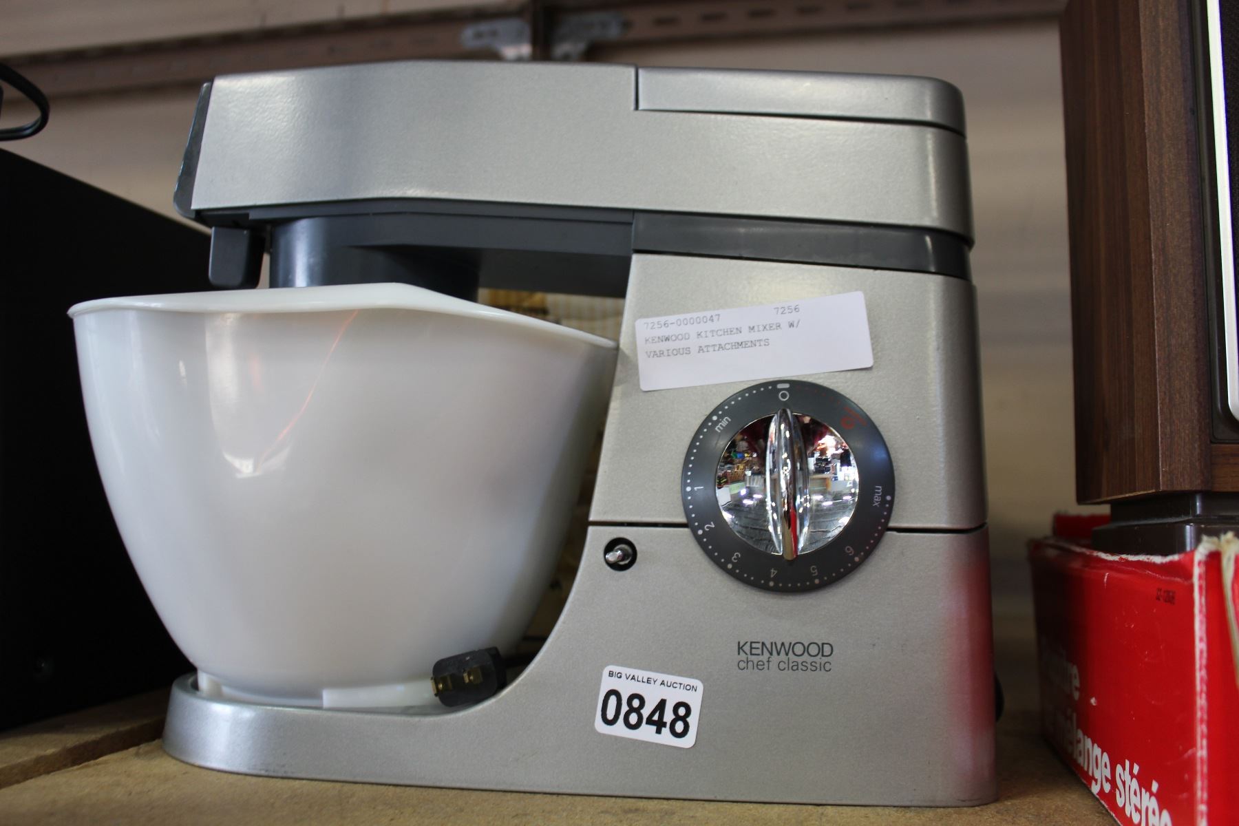 KENWOOD KITCHEN MIXER W/ VARIOUS ATTACHMENTS