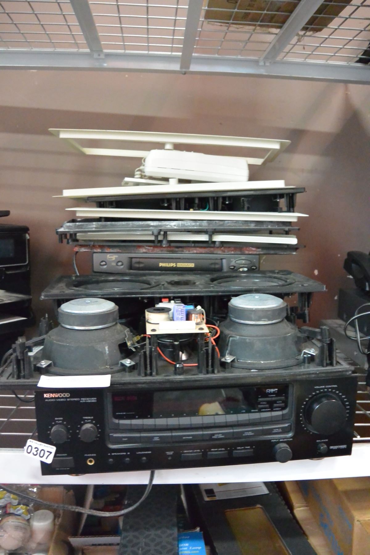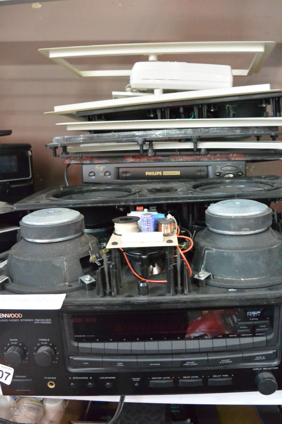 KENWOOD STEREO RECEIVER AND OTHER AUDIO SPEAKERS, VHS, ETC