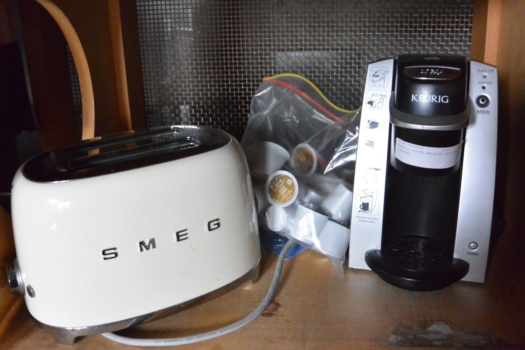 KEURIG COFFEE MACHINE AND SMEG TOASTER
