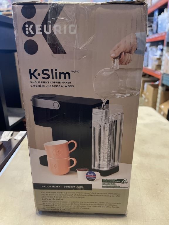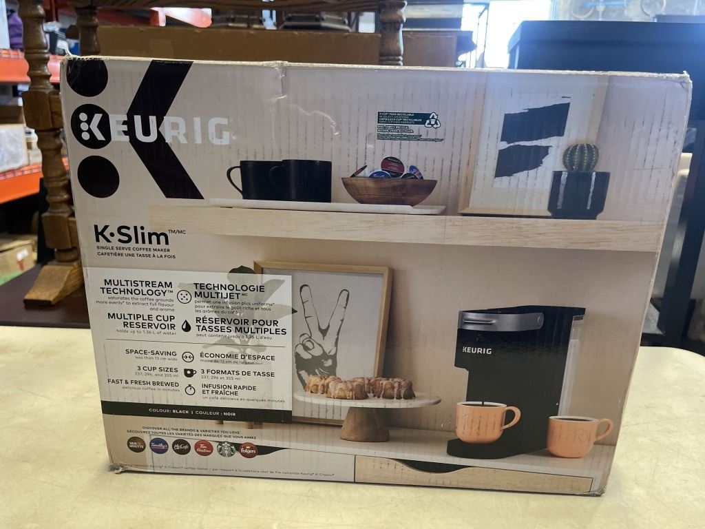KEURIG K SLIM COFFEE MAKER AND 2 GREY MATTERS PAPER PALLETTE 30 PACK
