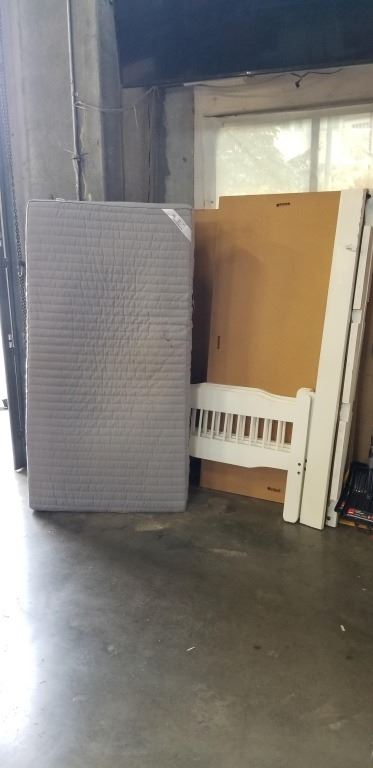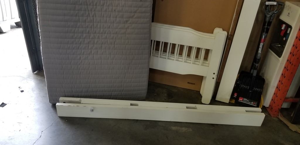 KIDS BUNK BED WITH MATTRESS - RAILS, HEAD BOARD, AND FOOT BOARD, NO HARDWARE
